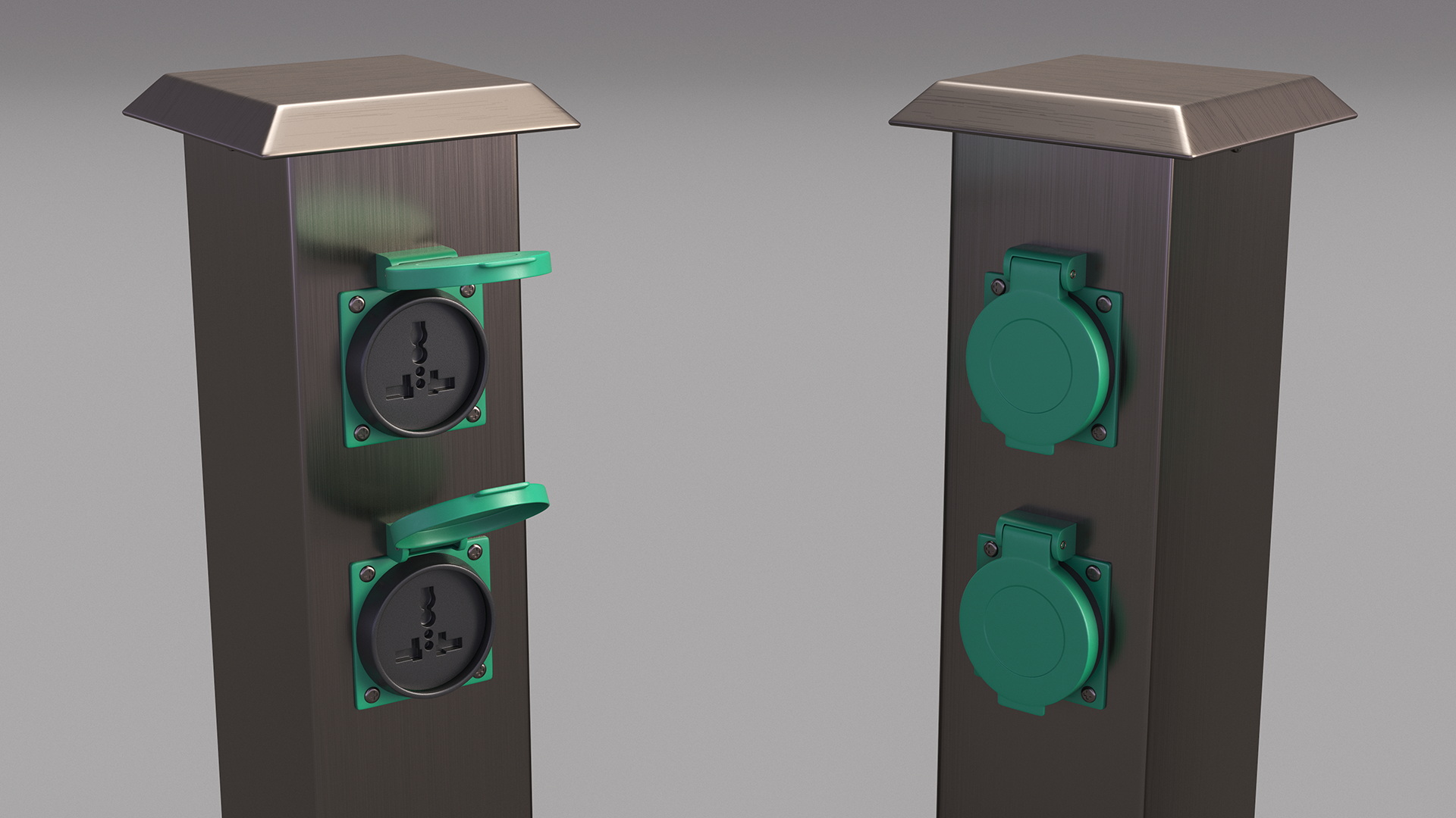 Garden Energy Column with 4 Socket is a three-dimensional model of garden energy column, equipped with four sockets and lids, which is a specialized outdoor electrical unit primarily used in gardens or outdoor settings.