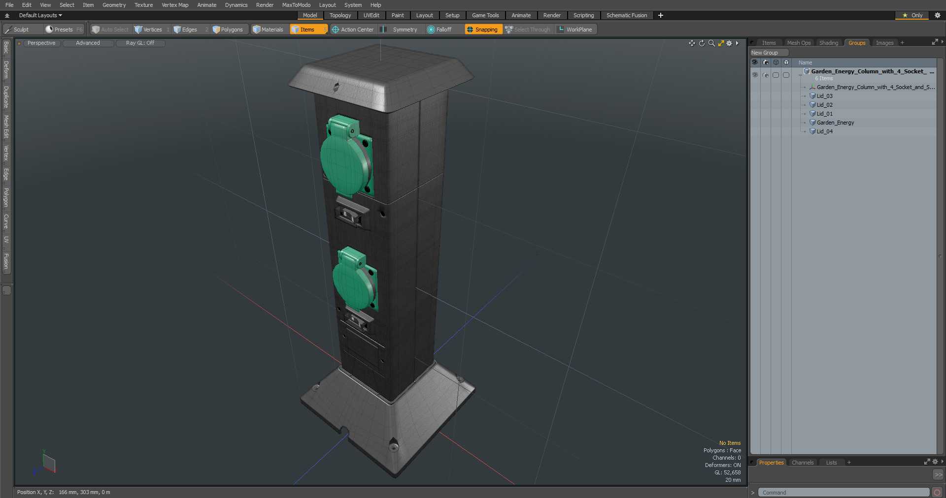 Garden Energy Column with 4 Socket and Switches is a high quality, photo real 3d model that will enhance detail and realism to any of your rendering projects. The model has a fully textured, detailed design that allows for close-up renders, and was originally modeled in 3ds Max 2020 and rendered with V-Ray. Renders have no postprocessing!