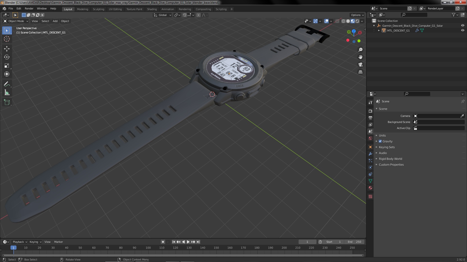 Garmin Descent Black Dive Computer G1 Solar is a high quality, photo real 3d model that will enhance detail and realism to any of your rendering projects. The model has a fully textured, detailed design that allows for close-up renders, and was originally modeled in 3ds Max 2020 and rendered with V-Ray. Renders have no postprocessing!