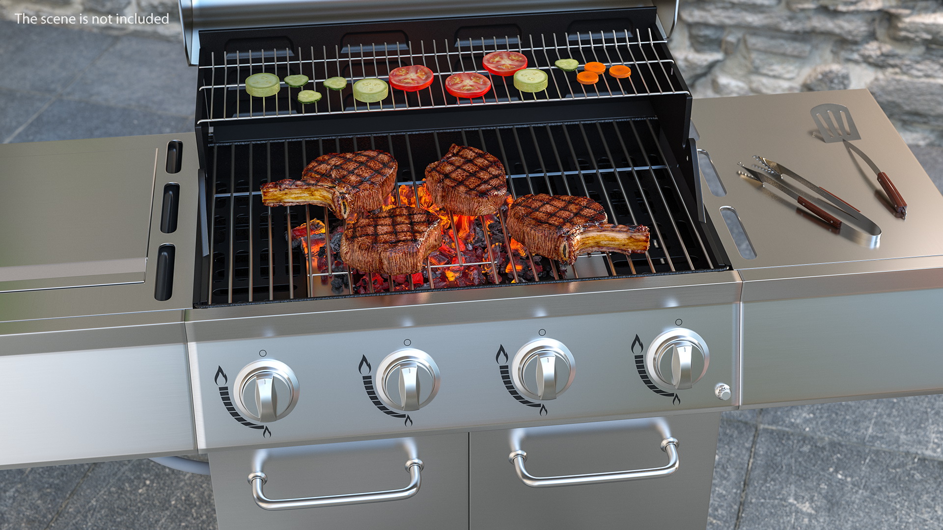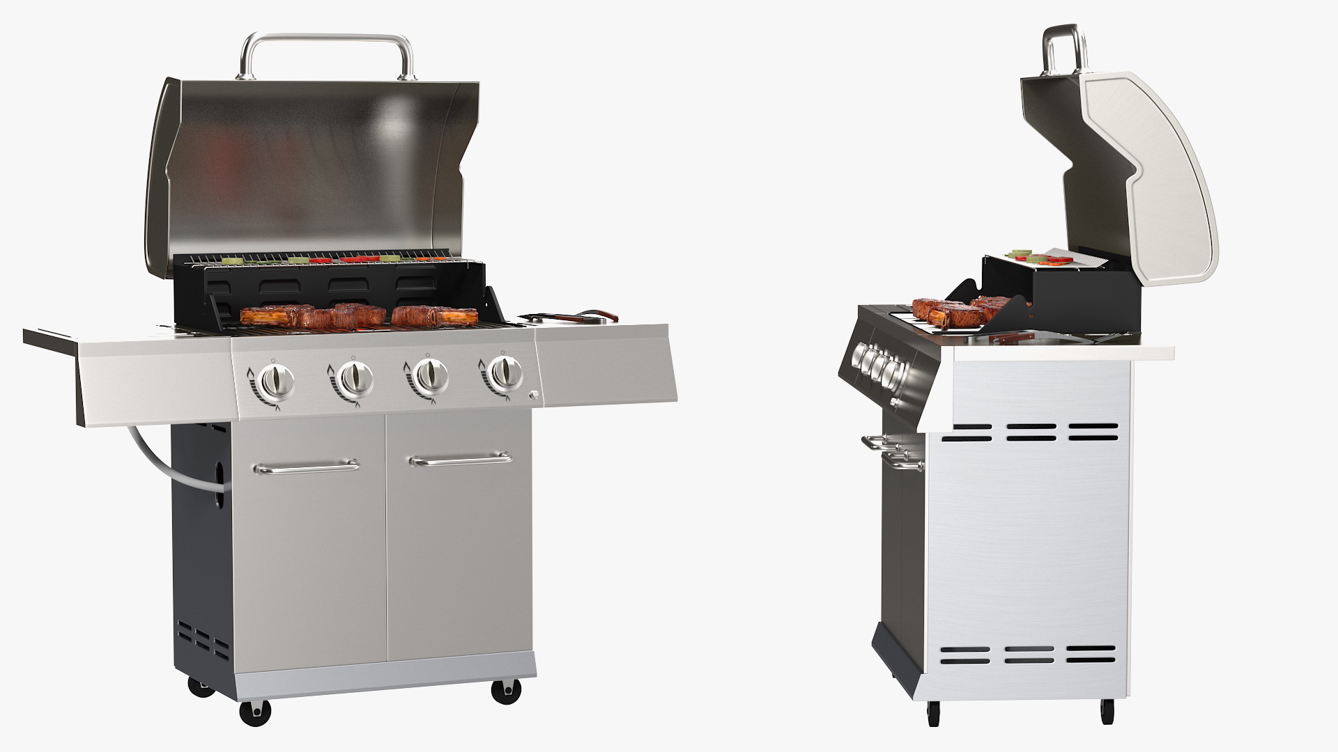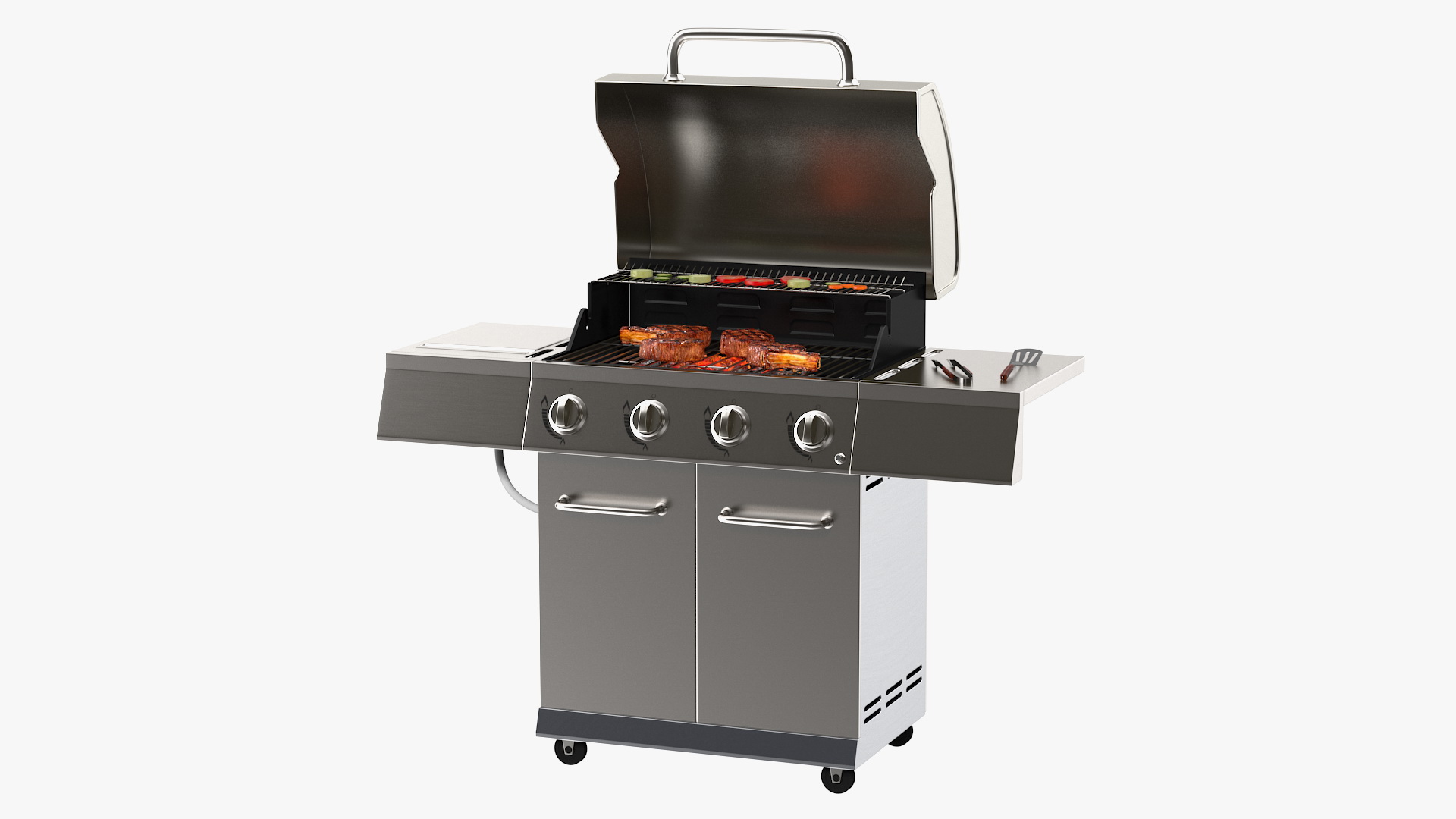 Gas Grill with Meat and Vegetables is a high quality, photo real 3d model that will enhance detail and realism to any of your rendering projects. The model has a fully textured, detailed design that allows for close-up renders, and was originally modeled in 3ds Max 2020 and rendered with V-Ray. Renders have no postprocessing!