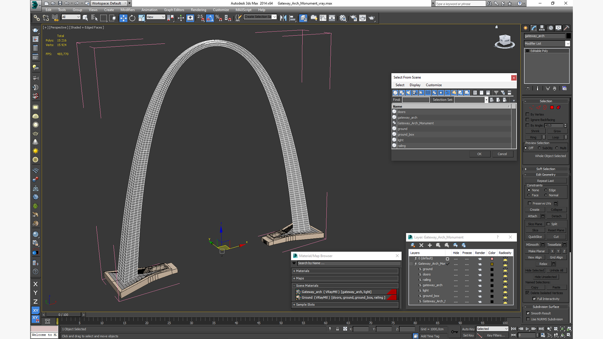 Gateway Arch Monument is a high quality, photo real 3d model that will enhance detail and realism to any of your rendering projects. The model has a fully textured, detailed design that allows for close-up renders, and was originally modeled in 3ds Max 2020 and rendered with V-Ray. Renders have no postprocessing!