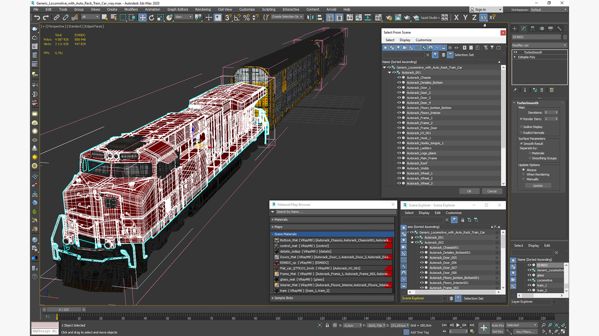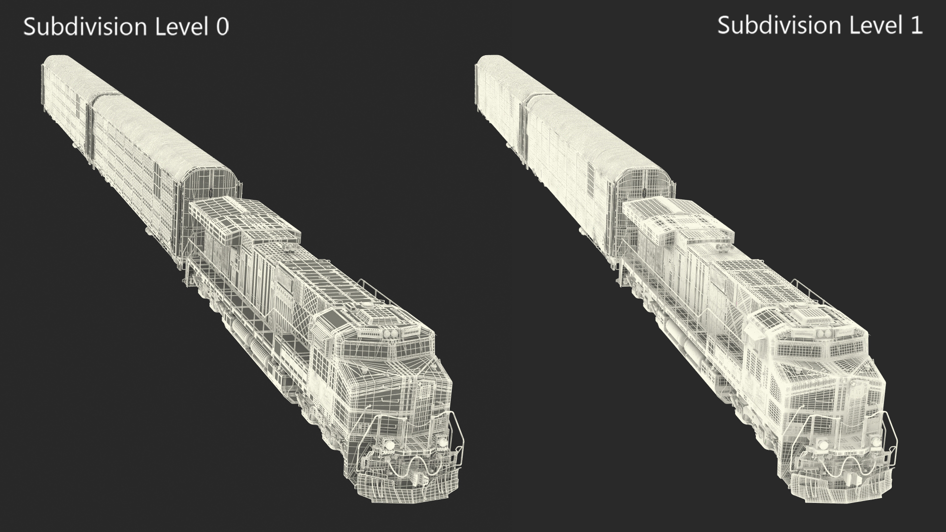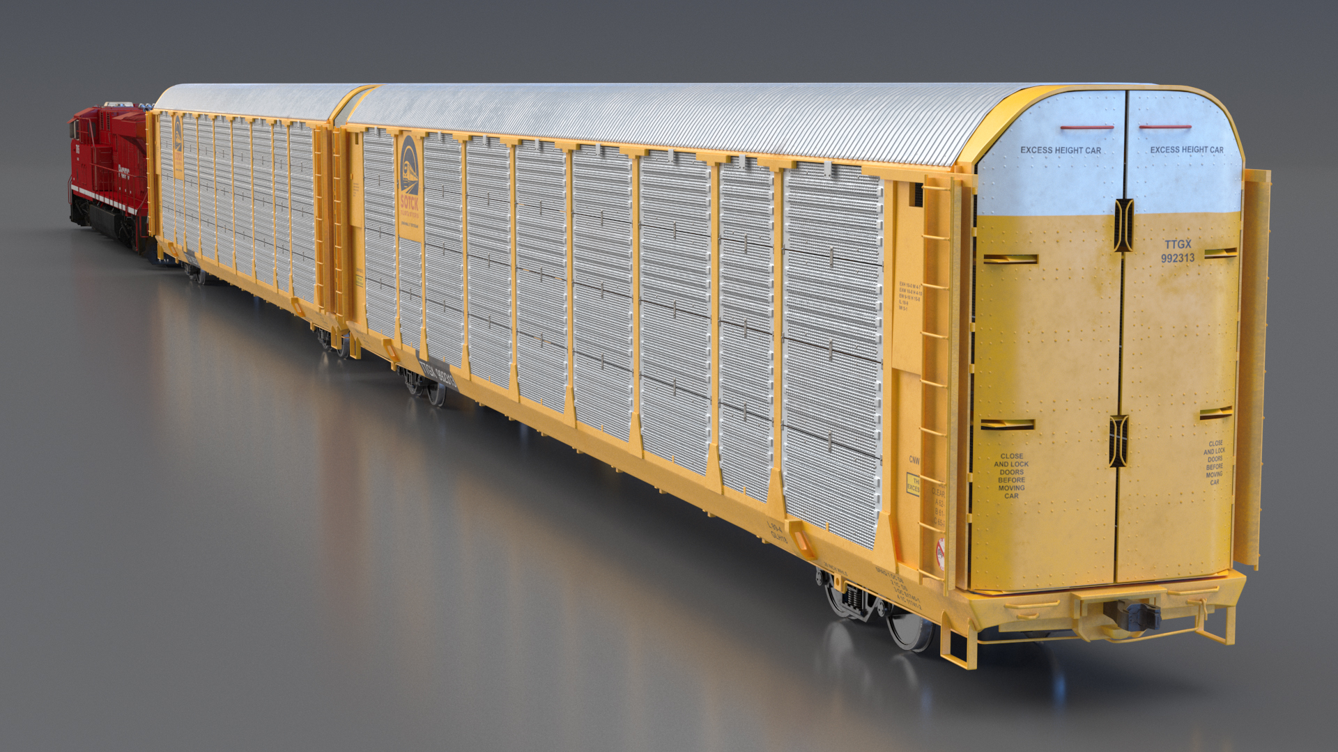 Generic Locomotive with Auto Rack Train Car is a high quality, photo real 3d model that will enhance detail and realism to any of your rendering projects. The model has a fully textured, detailed design that allows for close-up renders, and was originally modeled in 3ds Max 2020 and rendered with V-Ray. Renders have no postprocessing!