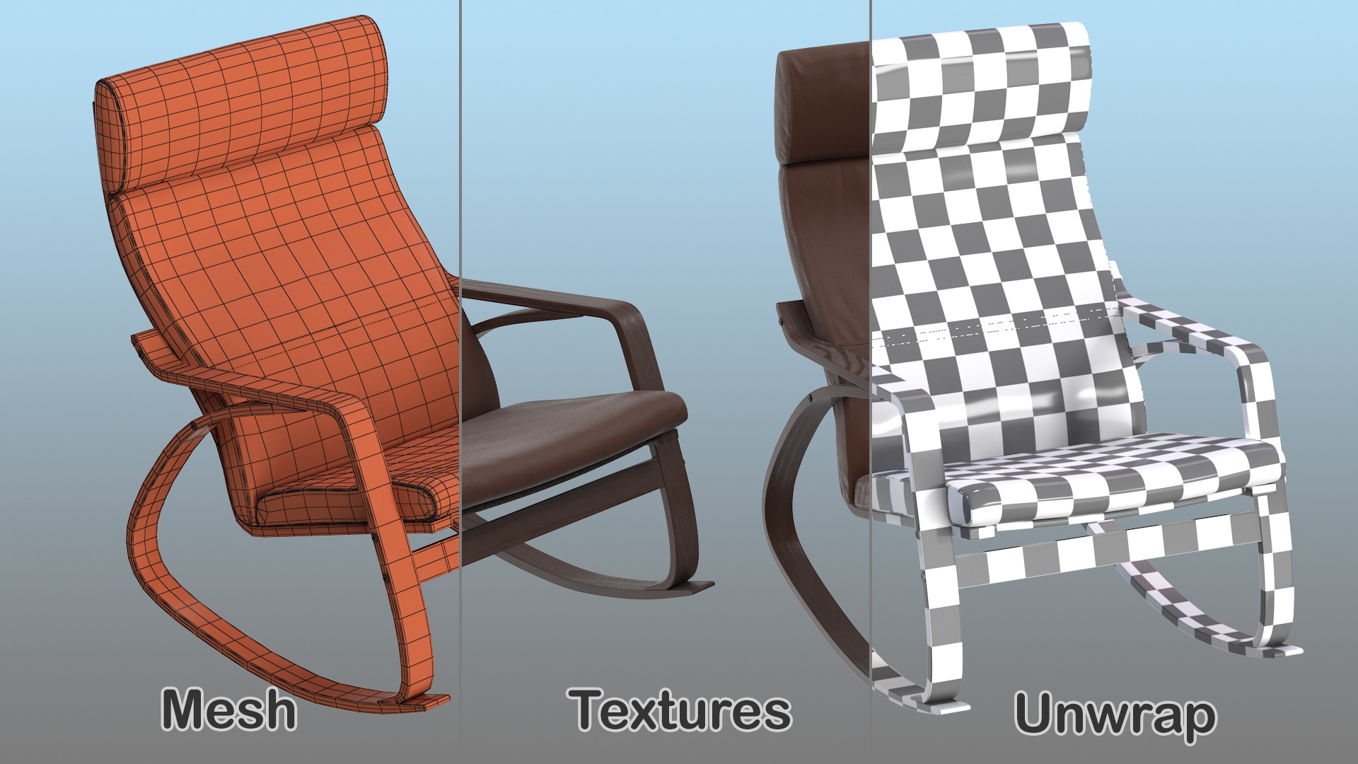 Genuine Leather Rocking Chair is a high quality, photo real 3d model that will enhance detail and realism to any of your rendering projects. The model has a fully textured, detailed design that allows for close-up renders, and was originally modeled in 3ds Max 2020 and rendered with V-Ray. Renders have no postprocessing!