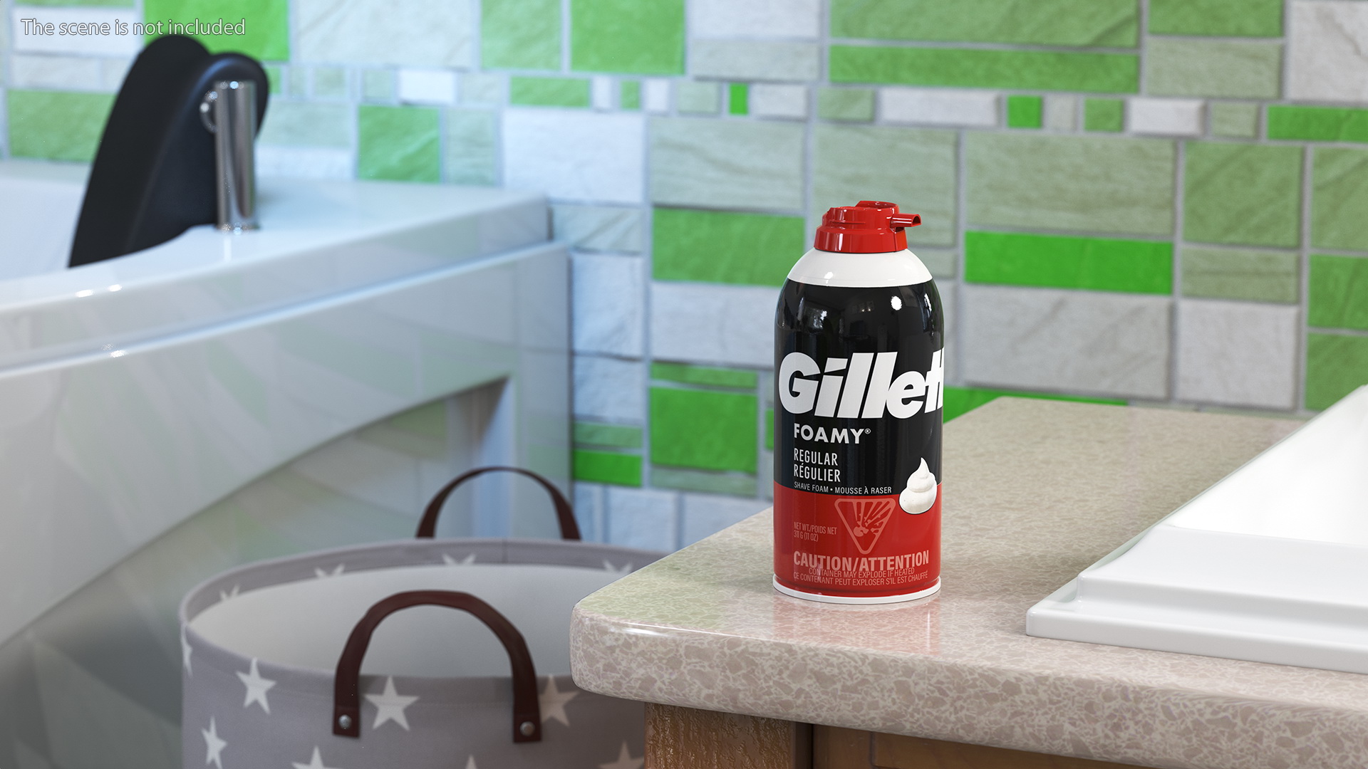 Gillette Foamy Shaving Cream Can 300ml is a three-dimensional model of a widespread can (tube or bottle) with foam (cream-like) cosmetic, which designed for well known shaving procedure preparation.