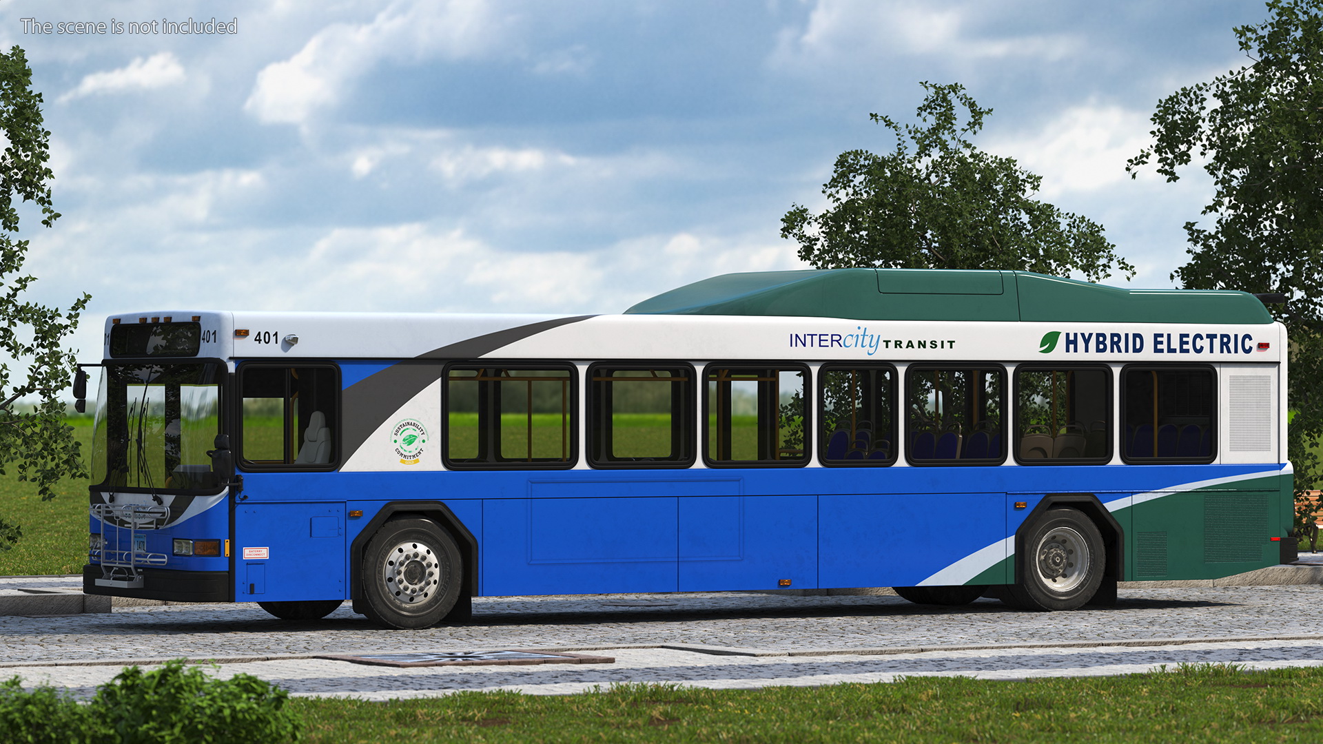 Gillig Advantage Hybrid Bus Intercity Transit Simple Interior is a three-dimensional model of a popular large public vehicle with long passenger compartment.