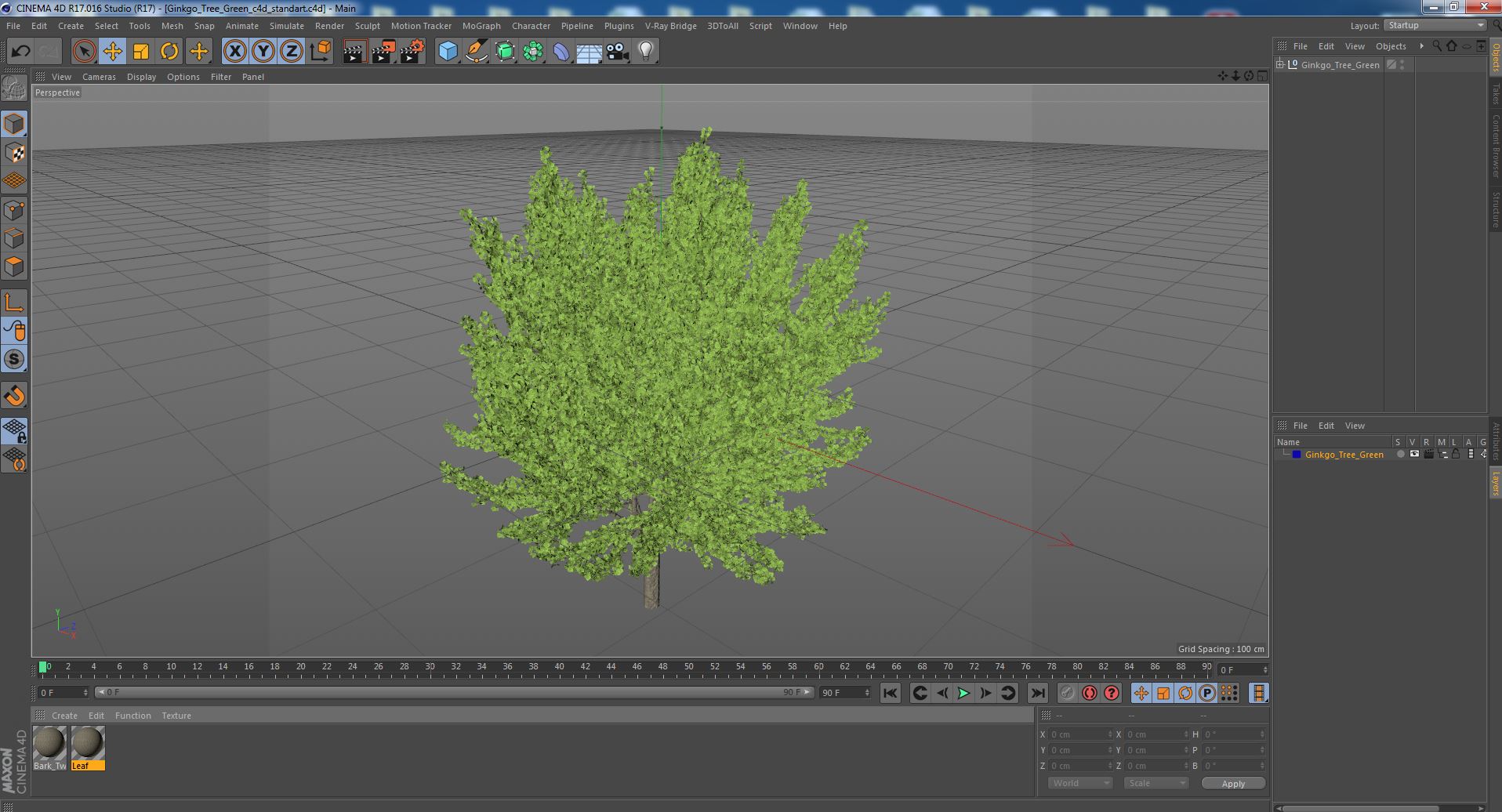 Ginkgo Tree Green is a three-dimensional model of a non-flowering seed tree plant.