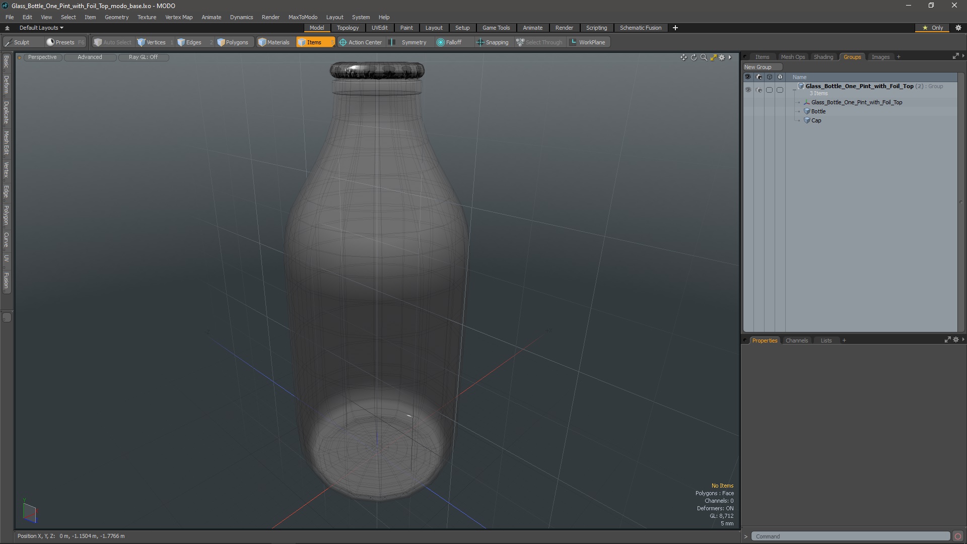Glass Bottle One Pint with Foil Top is a high quality, photo real 3d model that will enhance detail and realism to any of your rendering projects. The model has a fully textured, detailed design that allows for close-up renders, and was originally modeled in 3ds Max 2020 and rendered with V-Ray. Renders have no postprocessing!