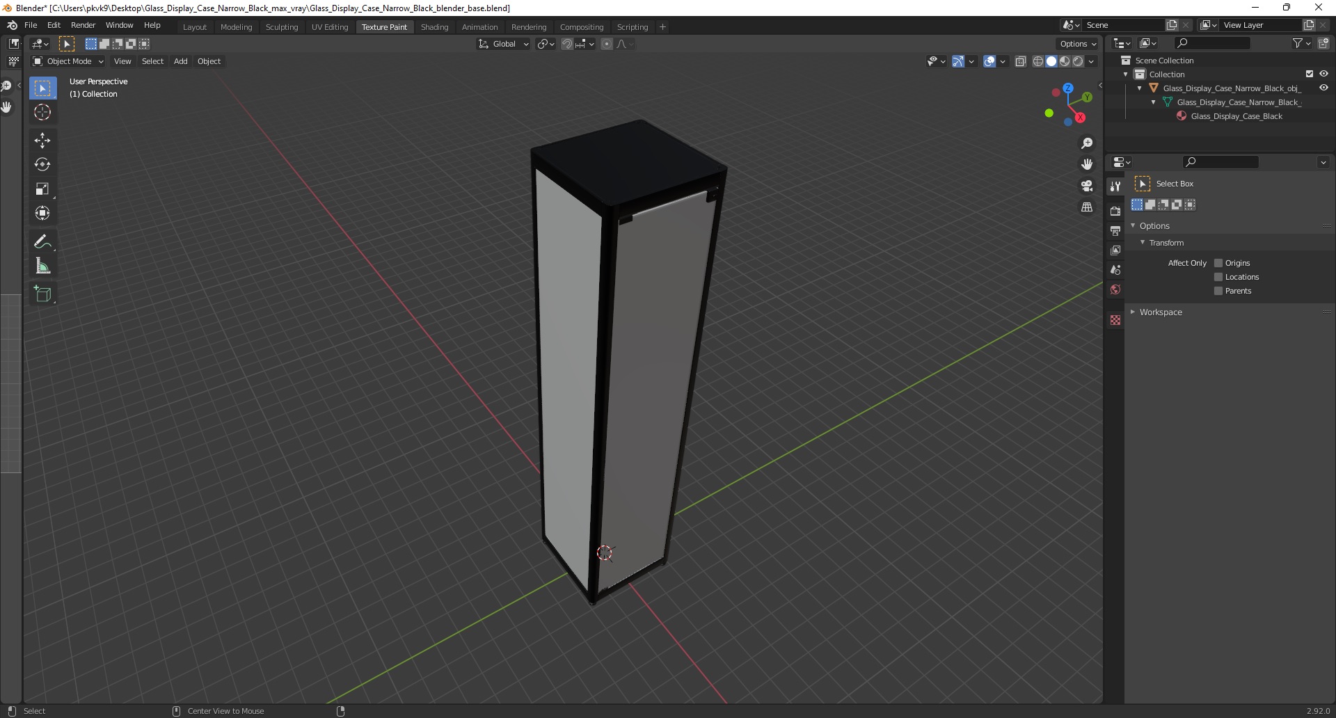 Glass Display Case Narrow Black is a high quality, photo real 3d model that will enhance detail and realism to any of your rendering projects. The model has a fully textured, detailed design that allows for close-up renders, and was originally modeled in 3ds Max 2020 and rendered with V-Ray. Renders have no postprocessing!