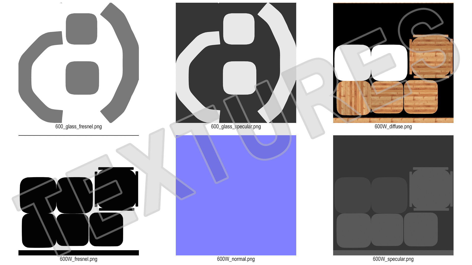 All textures and materials are included and mapped. (All colors can be easily modified.)