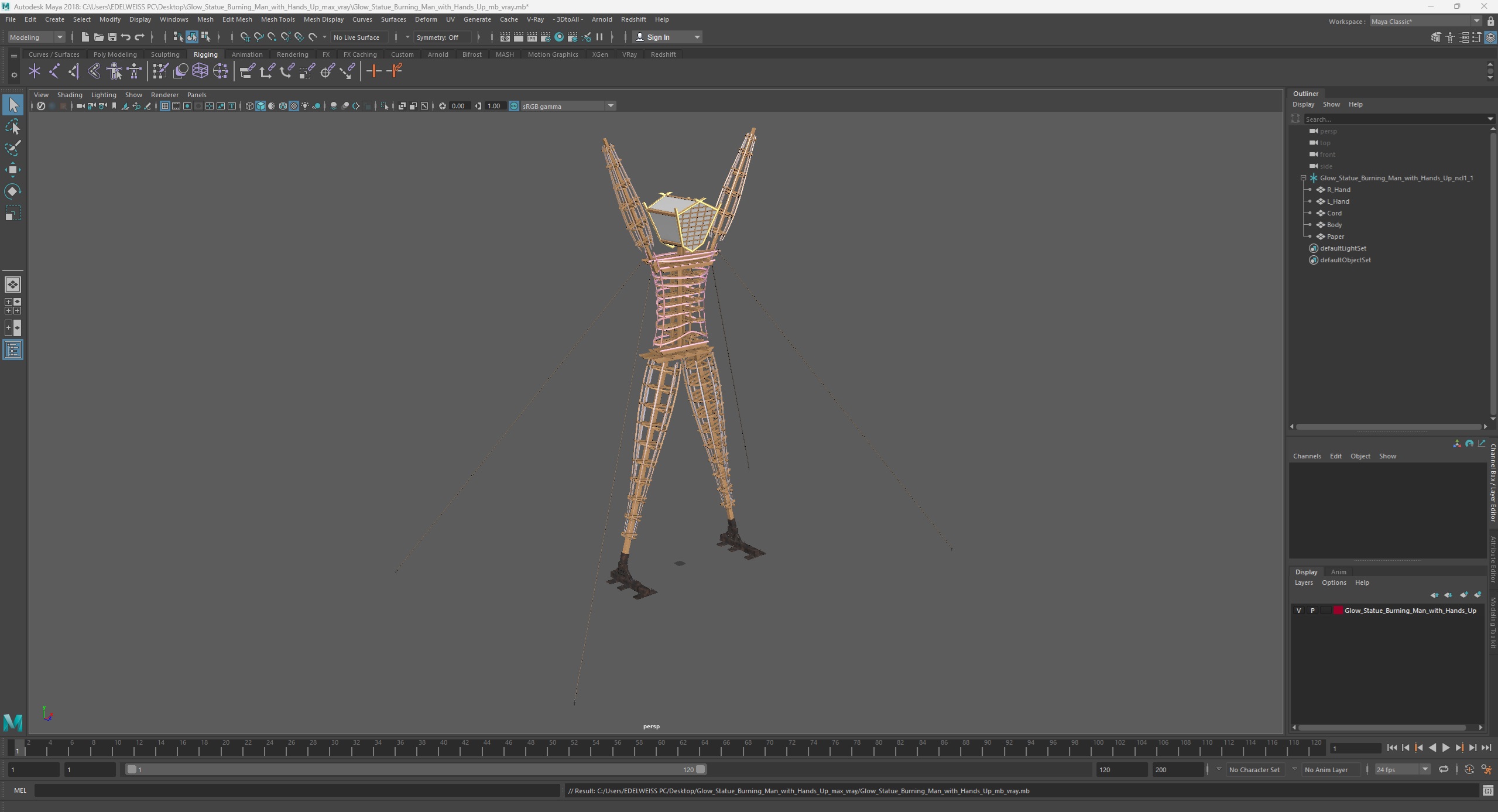 Glow Statue Burning Man with Hands Up is a high quality, photo real 3d model that will enhance detail and realism to any of your rendering projects. The model has a fully textured, detailed design that allows for close-up renders, and was originally modeled in 3ds Max 2020 and rendered with V-Ray. Renders have no postprocessing!