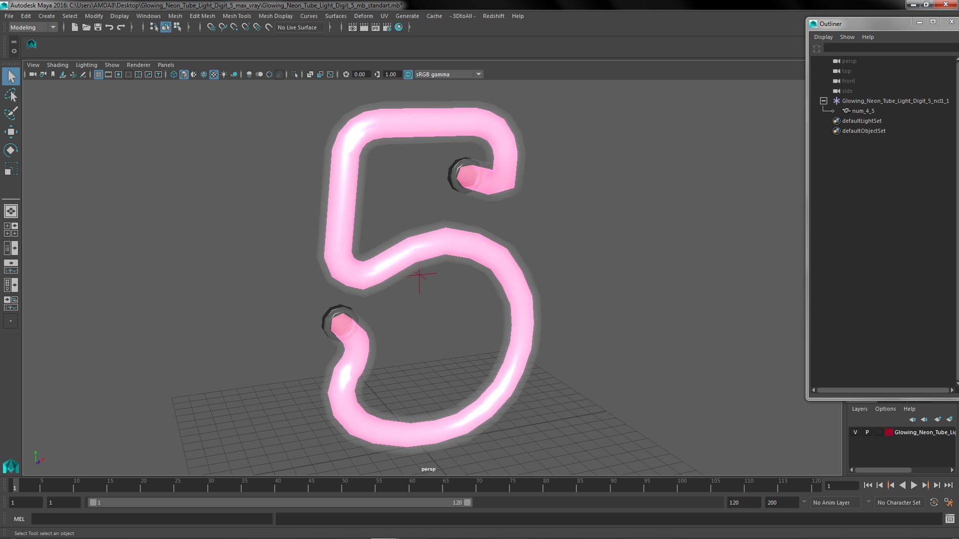 Glowing Neon Tube Light Digit 5 is a high quality, photo real 3d model that will enhance detail and realism to any of your rendering projects. The model has a fully textured, detailed design that allows for close-up renders, and was originally modeled in 3ds Max 2020 and rendered with V-Ray. Renders have no postprocessing!