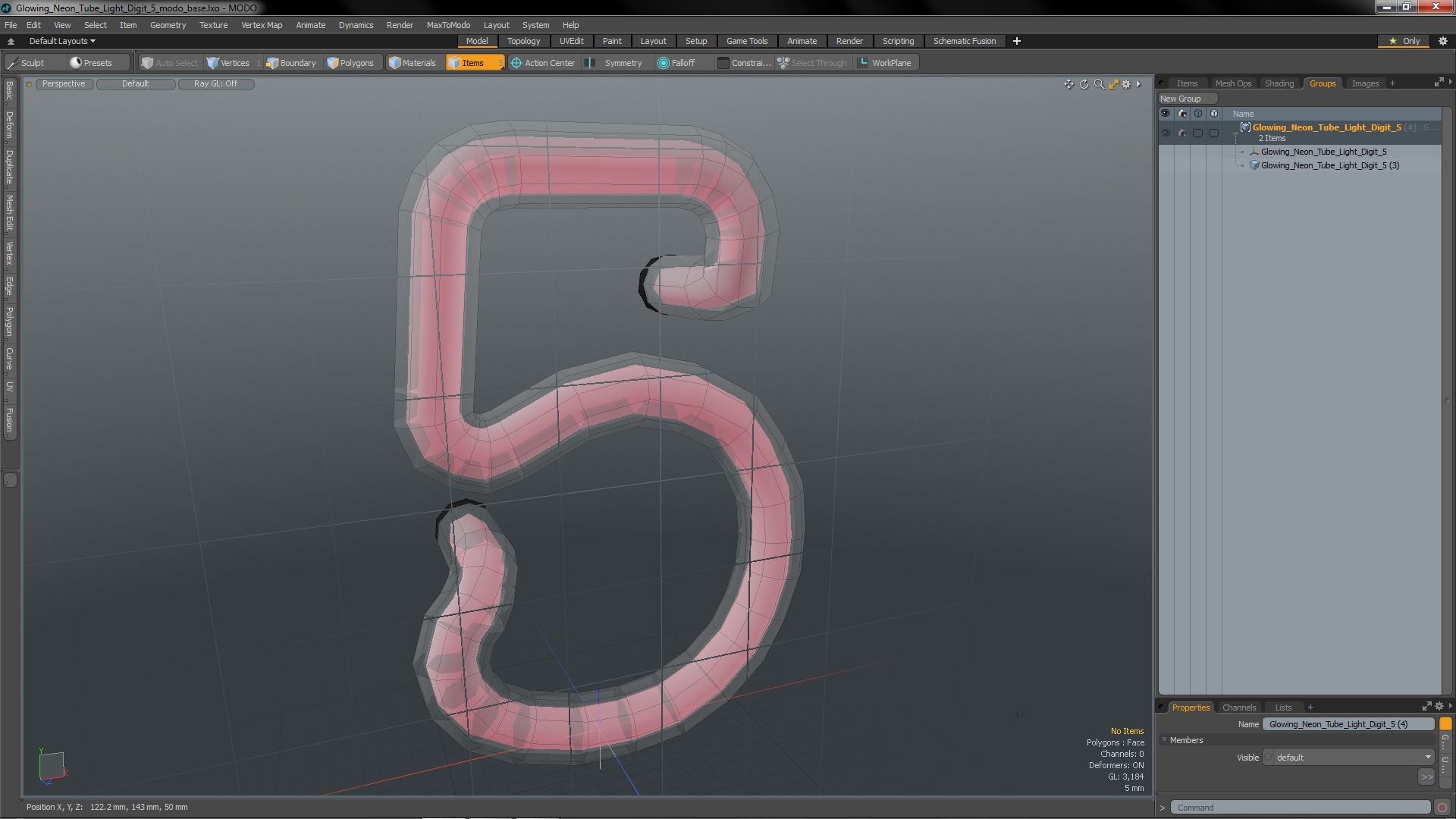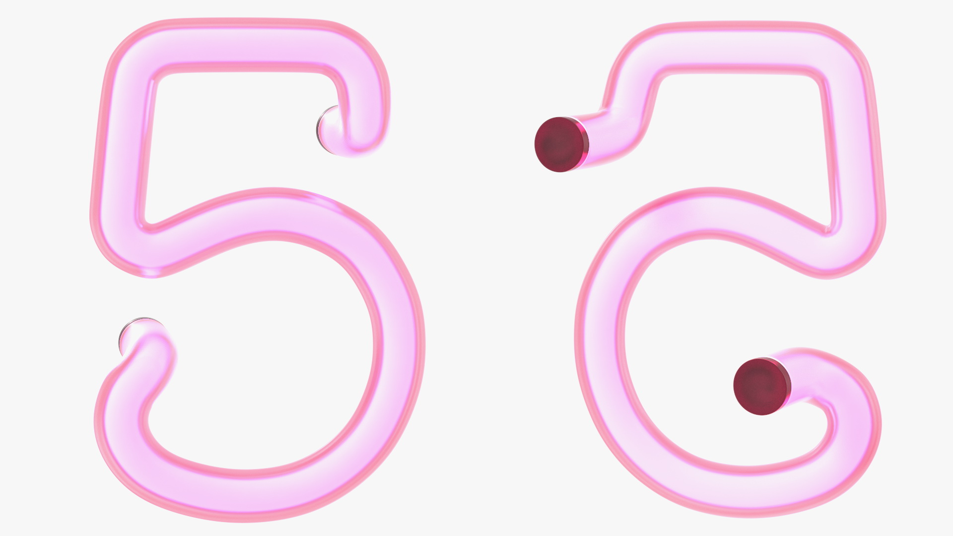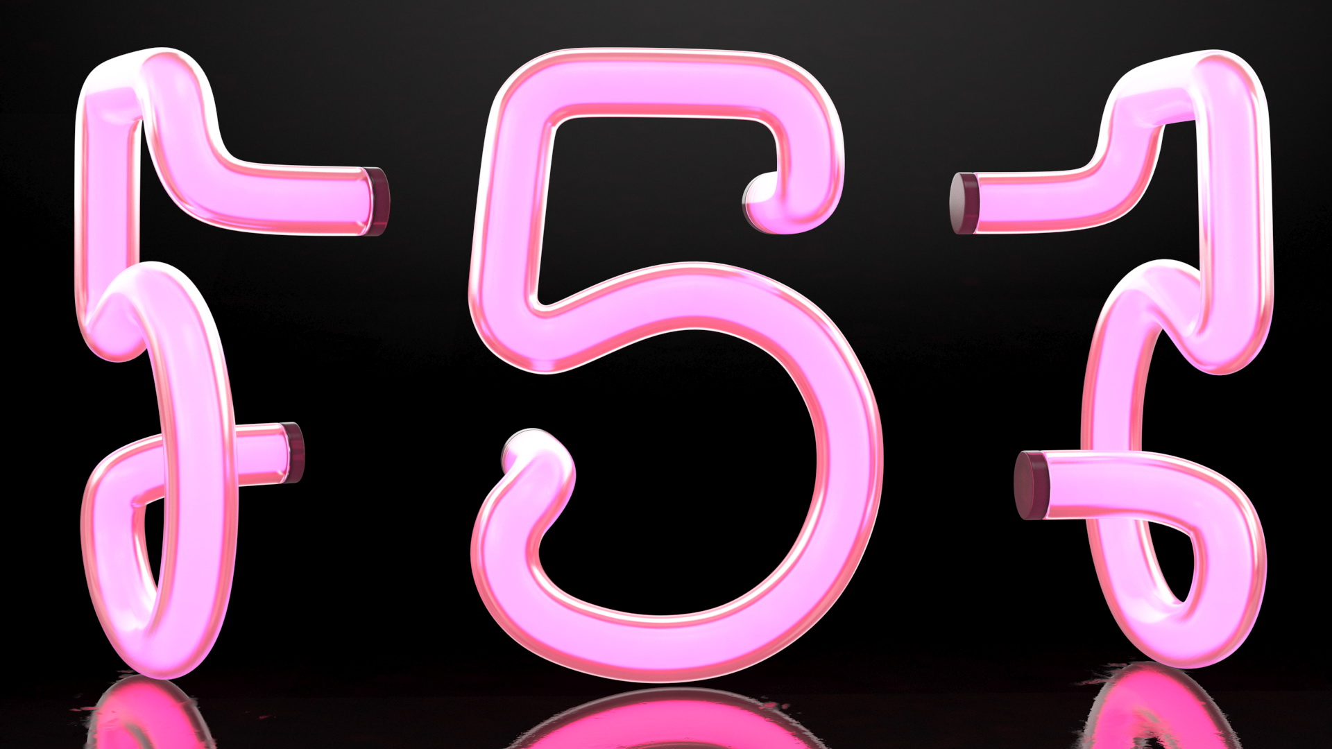 Glowing Neon Tube Light Digit 5 is a three-dimensional model of a number digit shaped sign representing electrified glass tube which used as the brightly glowing numeral symbol five.