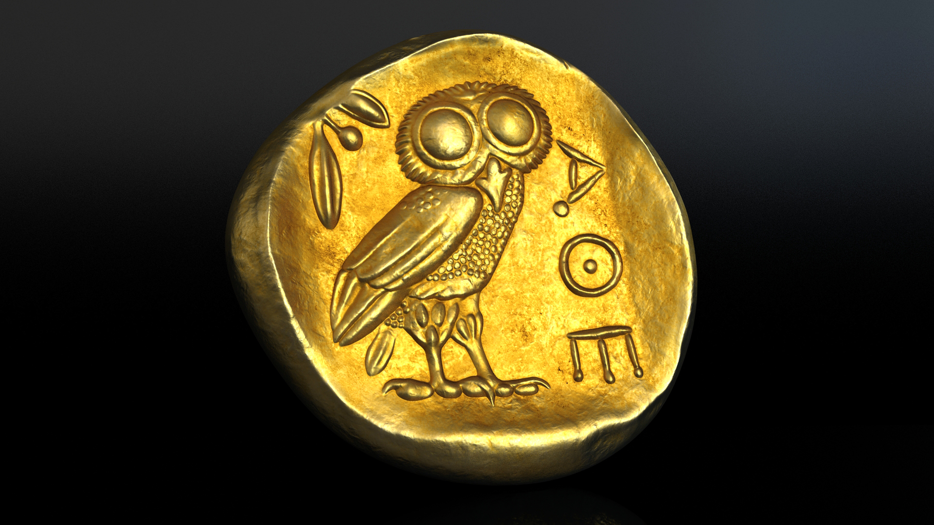 Gold Ancient Coin the Golden Drachma with Athena’s Symbol, the Owl.