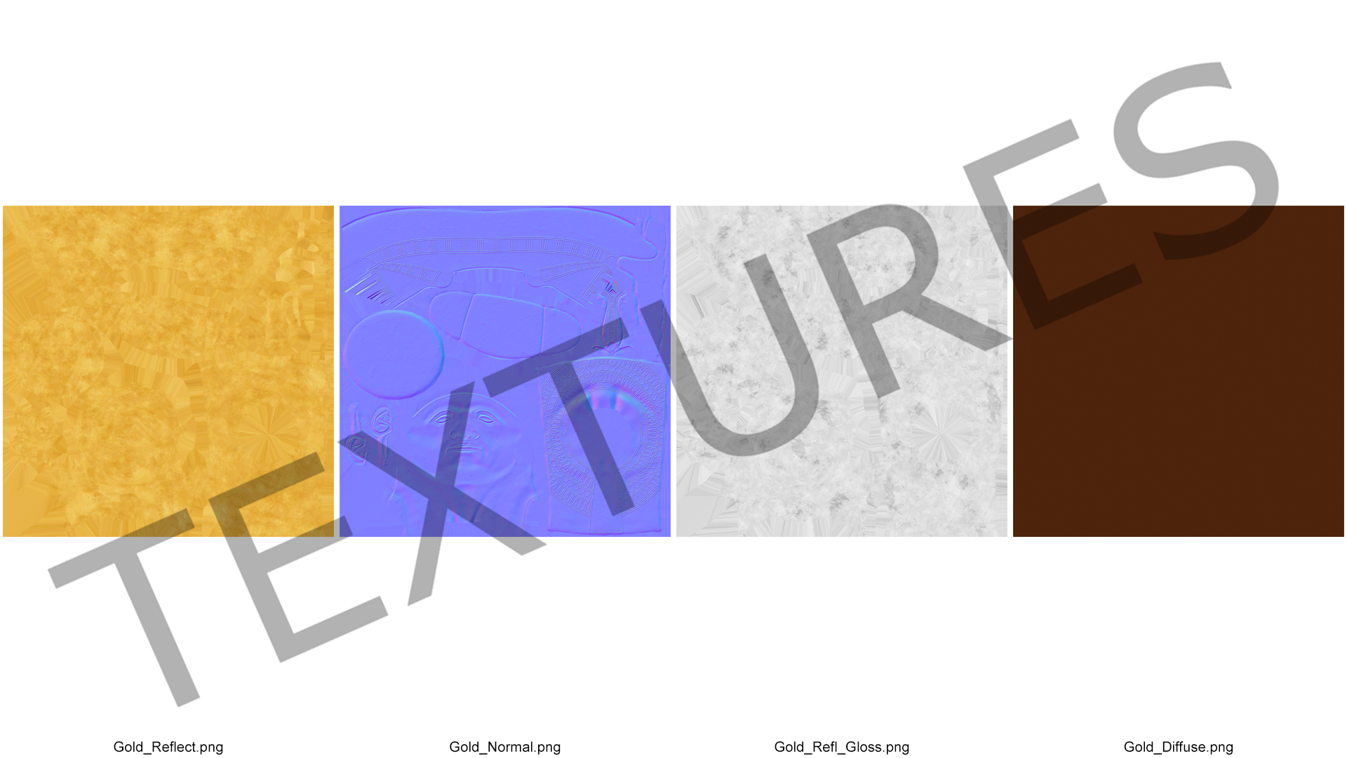 All textures and materials are included and mapped. (All colors can be easily modified.)