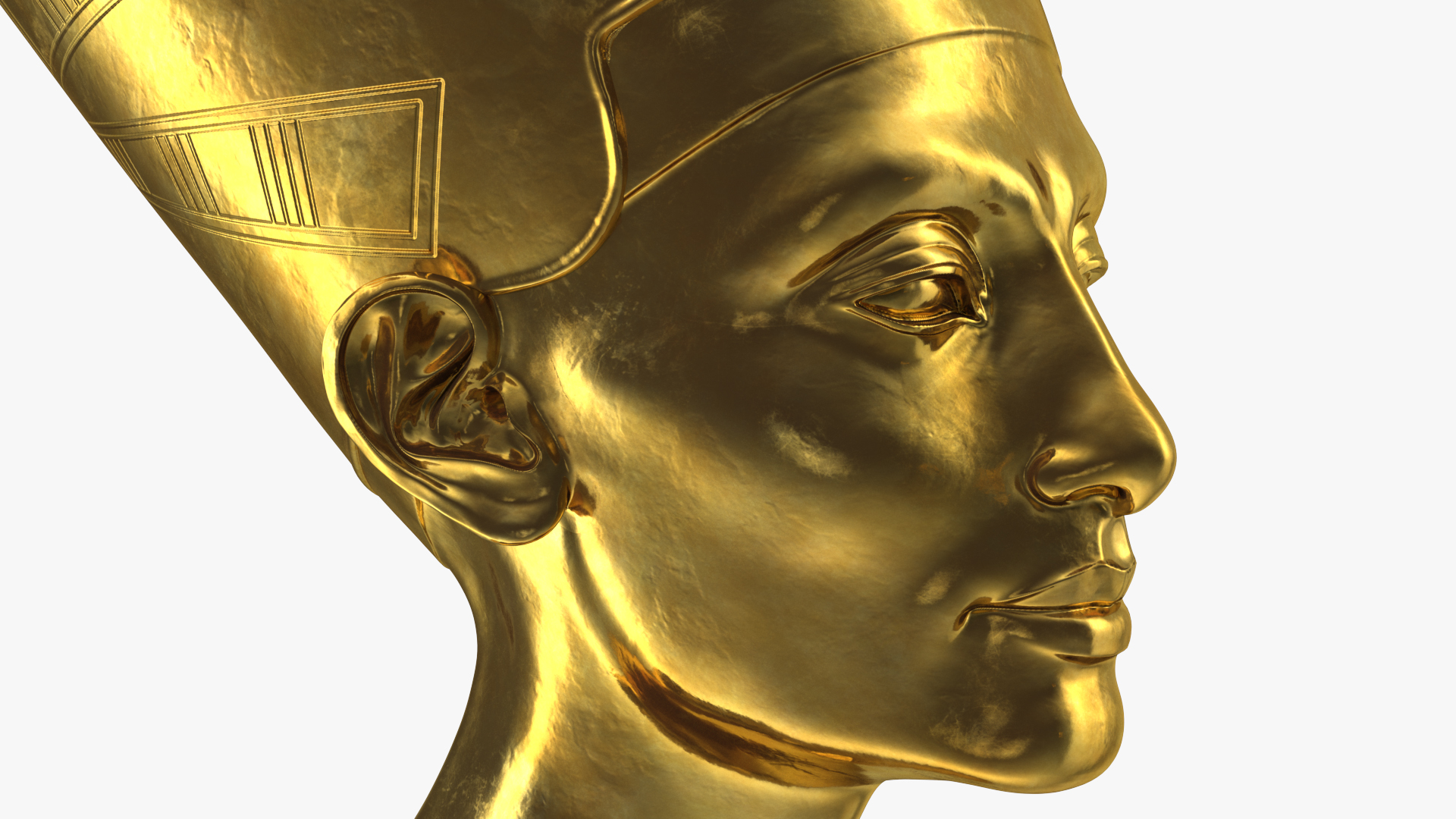 Golden Bust of Queen Nefertiti is a three-dimensional model of a metal material bust of the famous Great Royal Wife of Egyptian pharaoh Akhenaten.