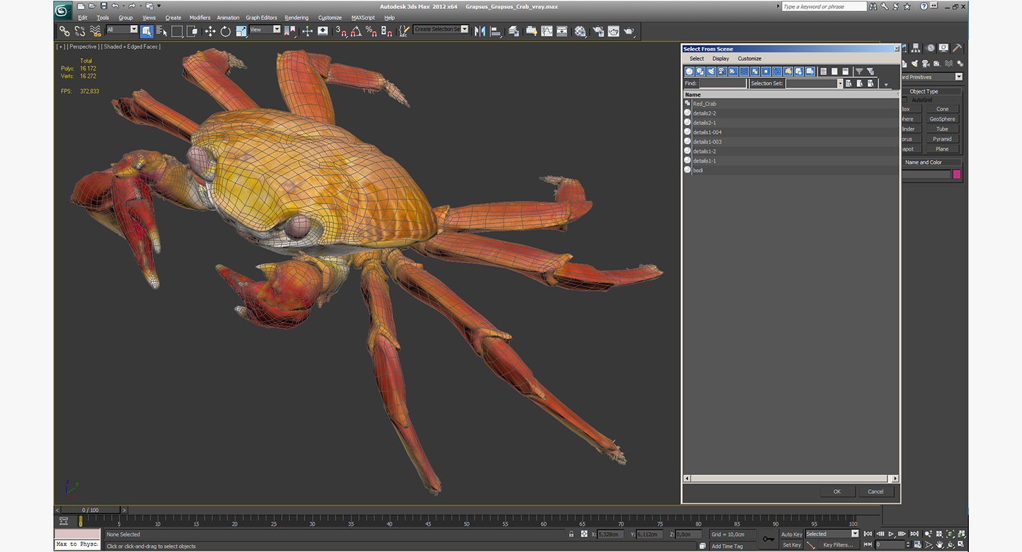Grapsus Grapsus Crab is a high quality, photo real 3d model that will enhance detail and realism to any of your rendering projects. The model has a fully textured, detailed design that allows for close-up renders, and was originally modeled in 3ds Max 2020 and rendered with V-Ray. Renders have no postprocessing!