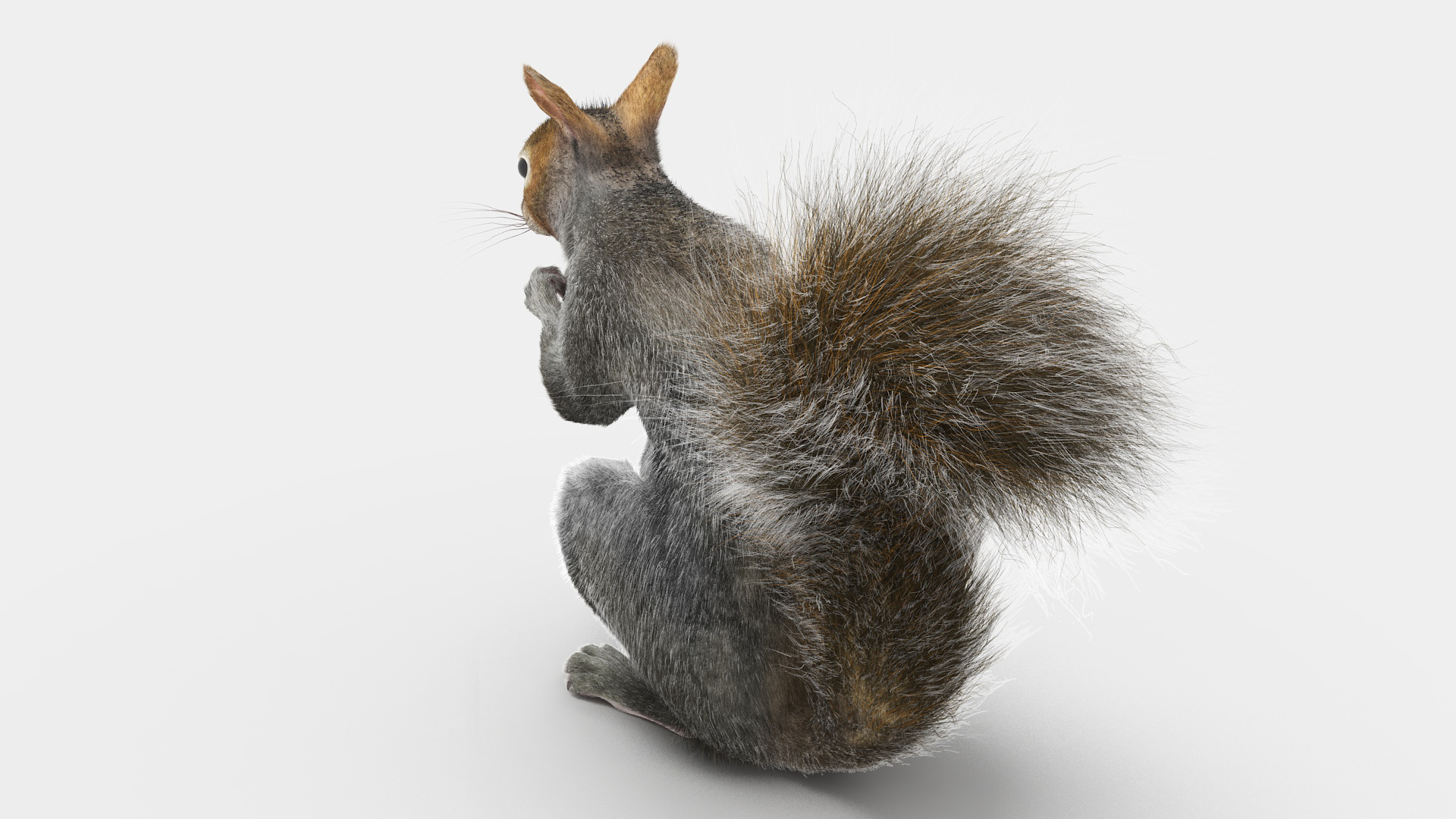 Gray Squirrel in a Sitting Pose Fur has a 3dsmax Fur modifier, hair customizable (hair count, hair segments, hair color, root size, tip size, etc).