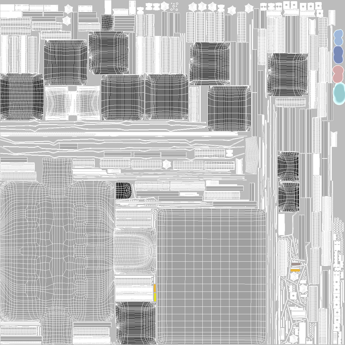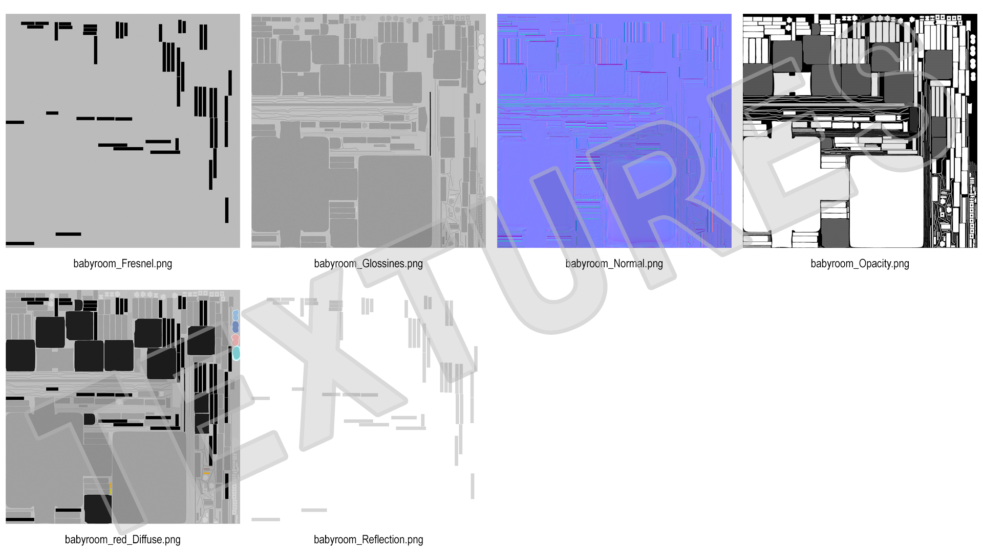 All textures and materials are included and mapped. (All colors can be easily modified.)
