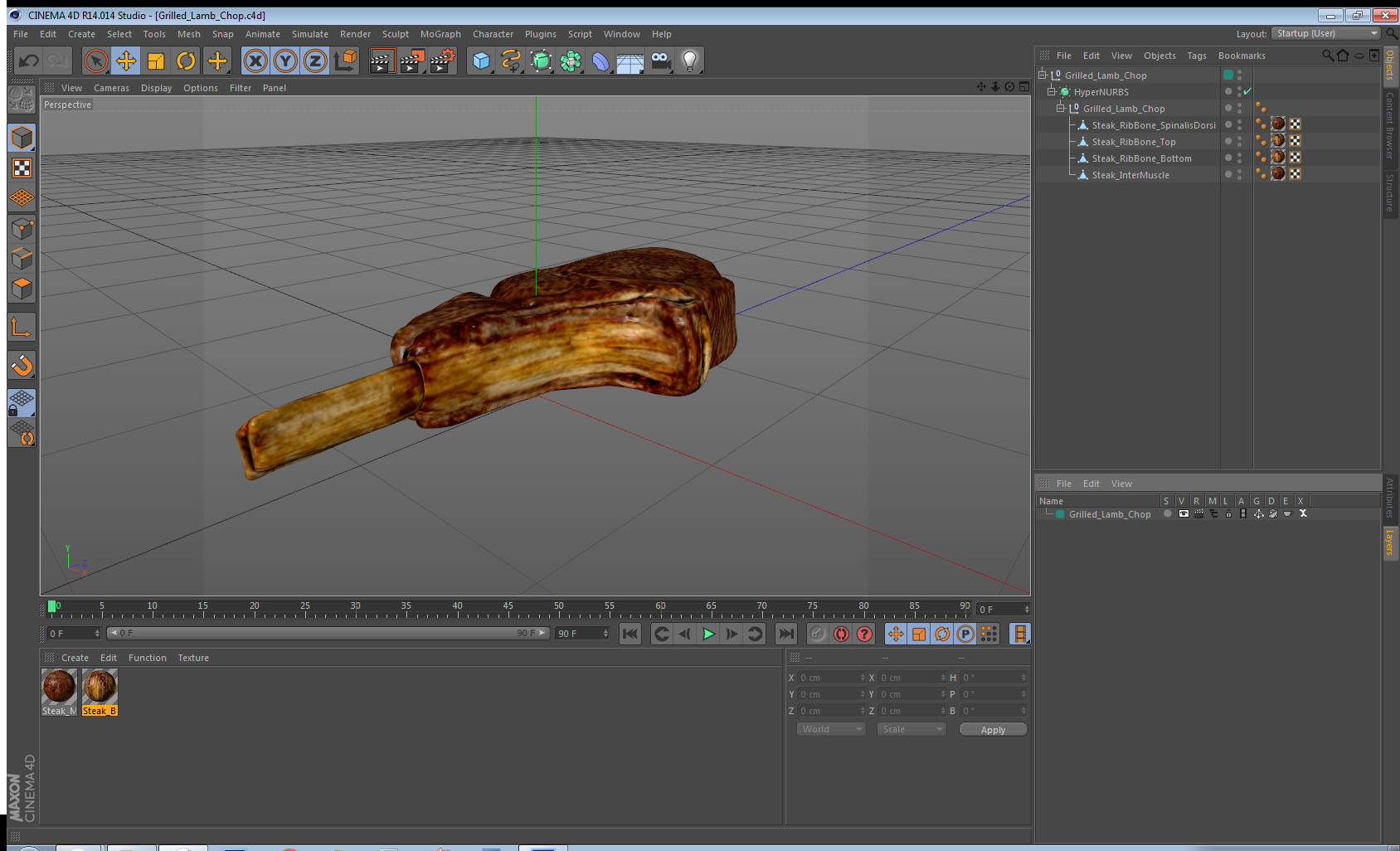 Grilled Lamb Chop is a high quality, photo real 3d model that will enhance detail and realism to any of your rendering projects. The model has a fully textured, detailed design that allows for close-up renders, and was originally modeled in 3ds Max 2020 and rendered with V-Ray. Renders have no postprocessing!