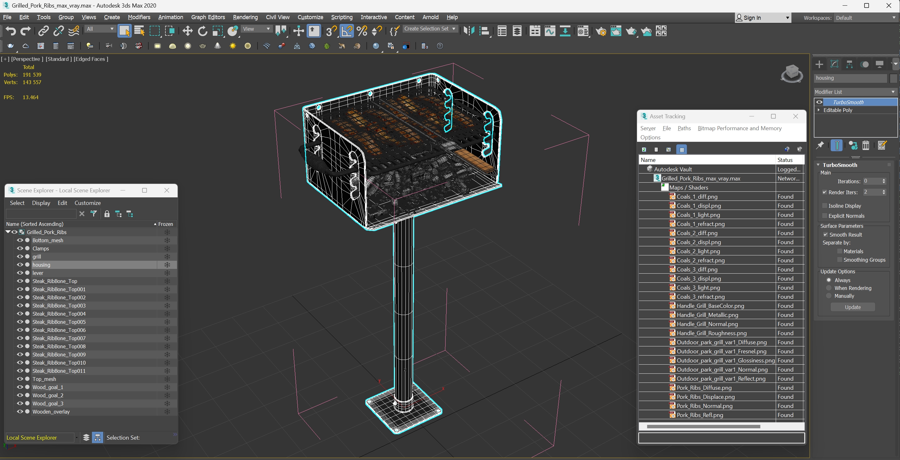 Grilled Pork Ribs is a high quality, photo real 3d model that will enhance detail and realism to any of your rendering projects. The model has a fully textured, detailed design that allows for close-up renders, and was originally modeled in 3ds Max 2020 and rendered with V-Ray. Renders have no postprocessing!