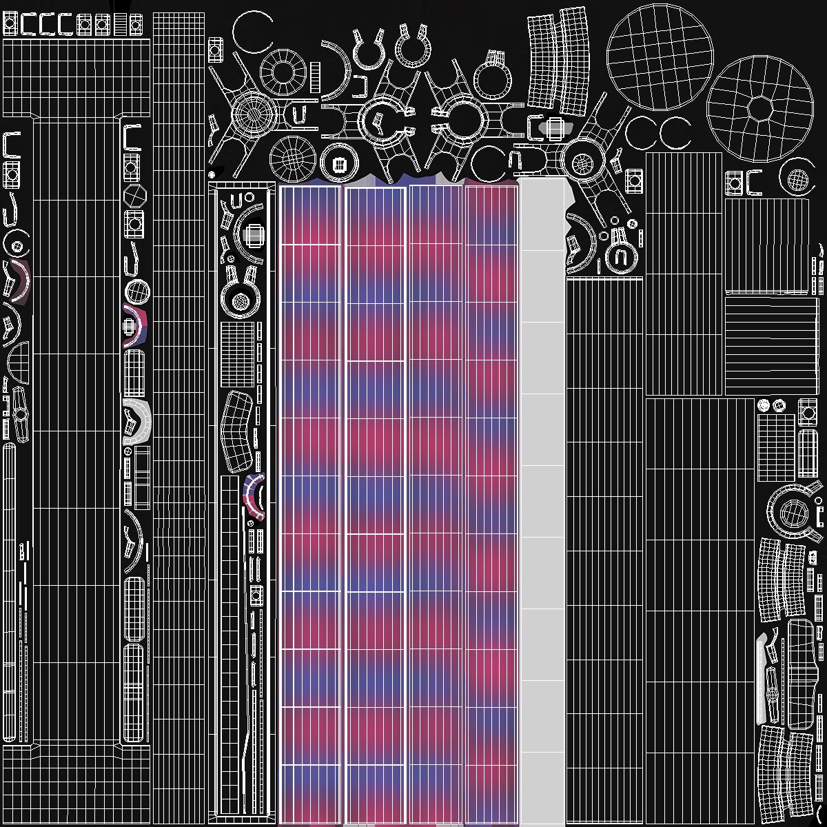 All textures and materials are included and mapped. (All colors can be easily modified.)