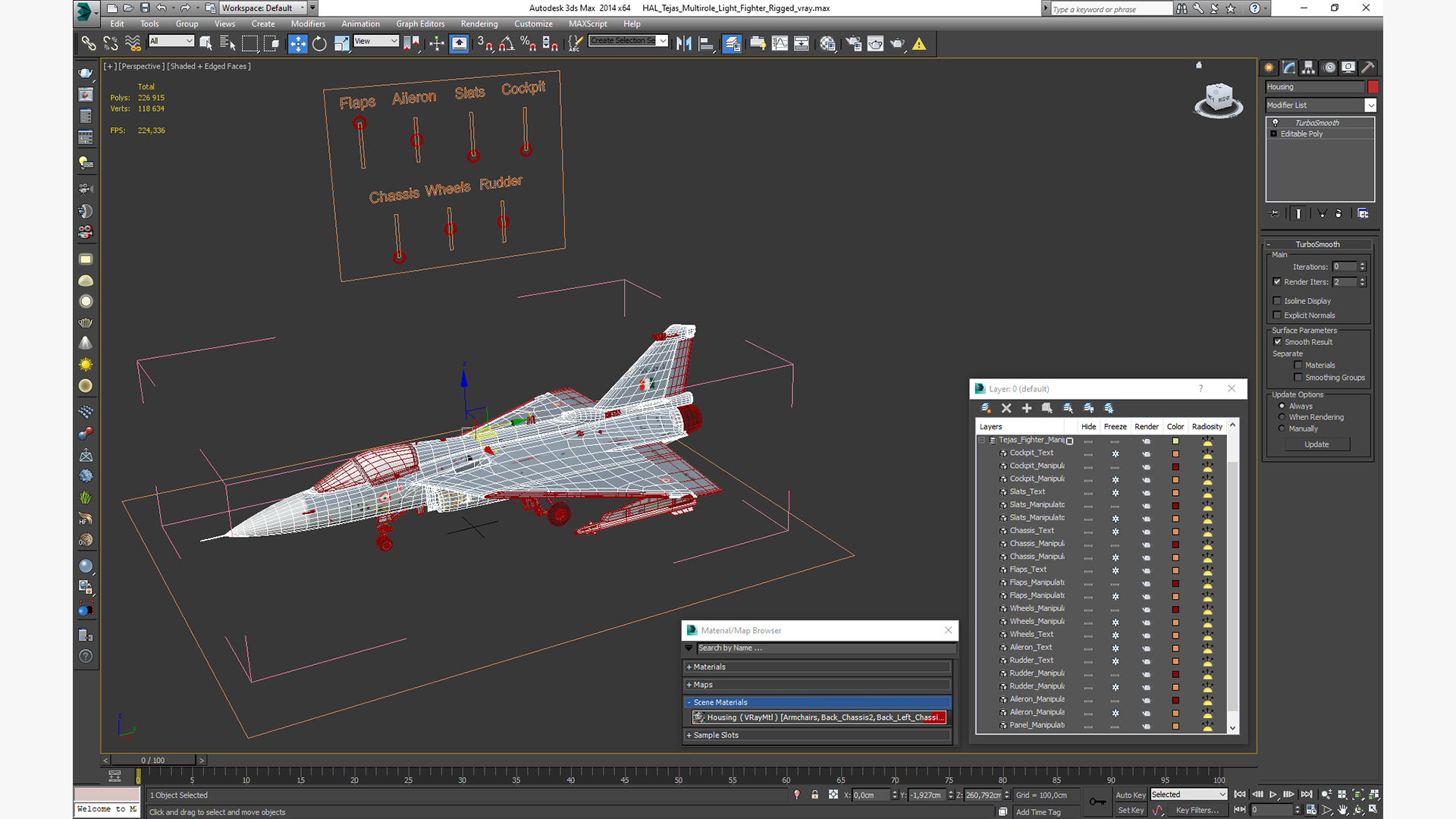 HAL Tejas Multirole Light Fighter Rigged is fully rigged and is ready to be animated. You can easily position it the way you need or animate it the way your project requires using helpers in 3D Studio Max. See the turntable to get an idea of how rigging works.