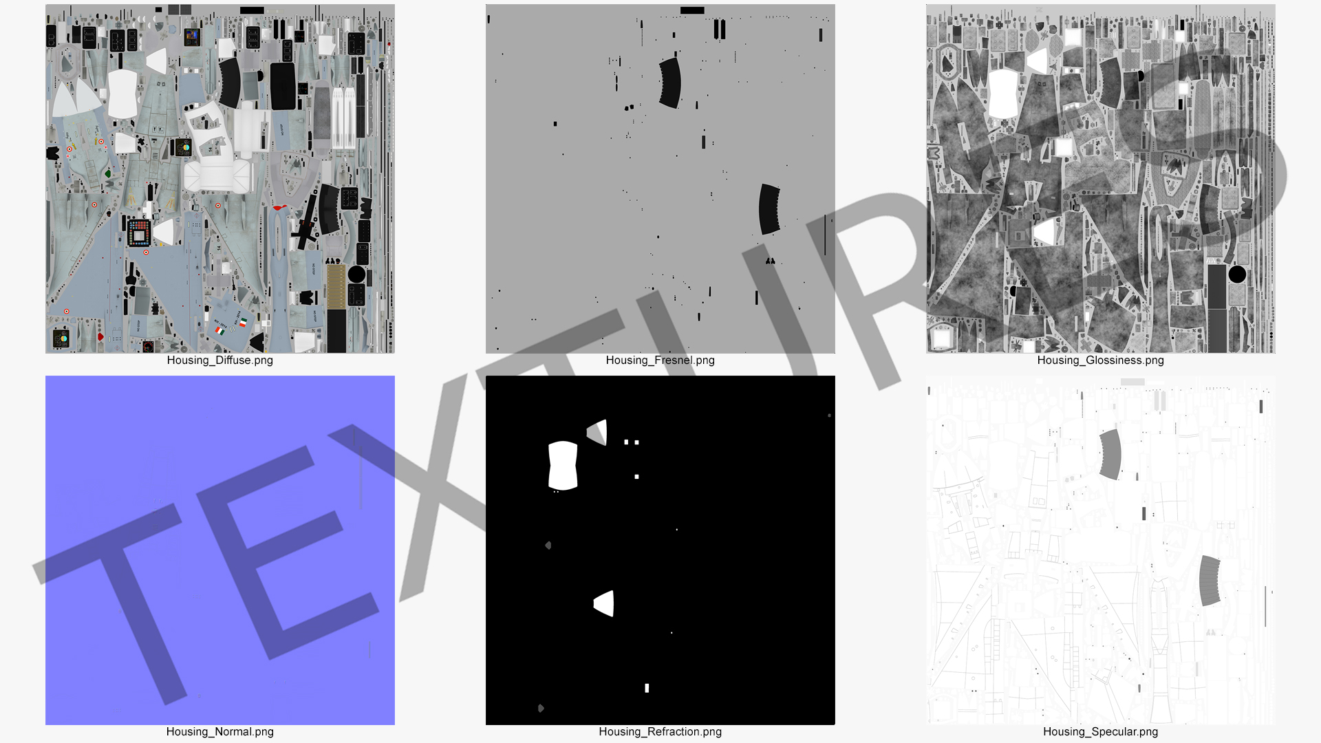 All textures and materials are included and mapped. (All colors can be easily modified.)