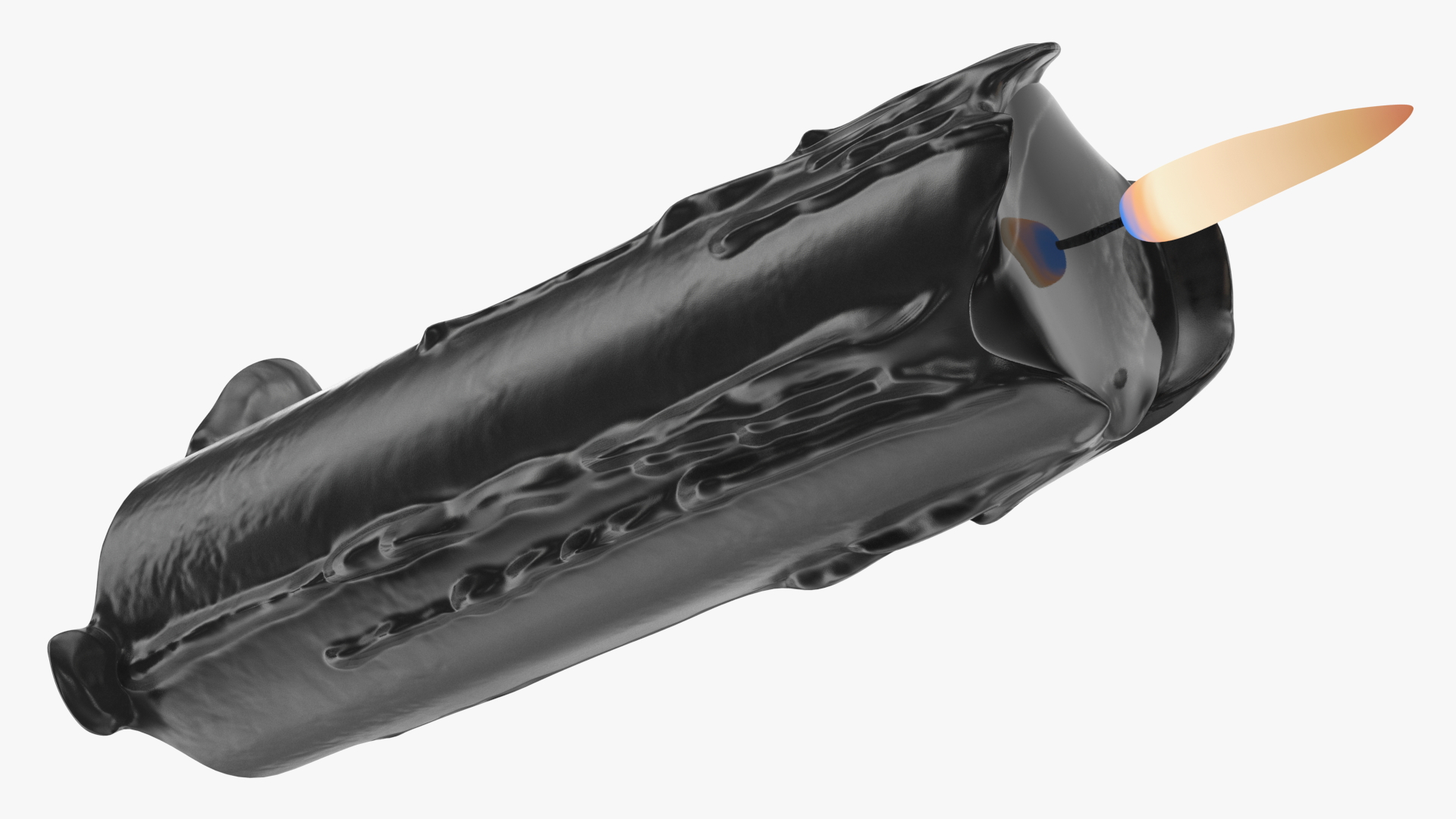 Half Burned Candle with Flowing Wax Black is a 3d model of wax that has been formed into a stick and has a string in the middle that can be burned.