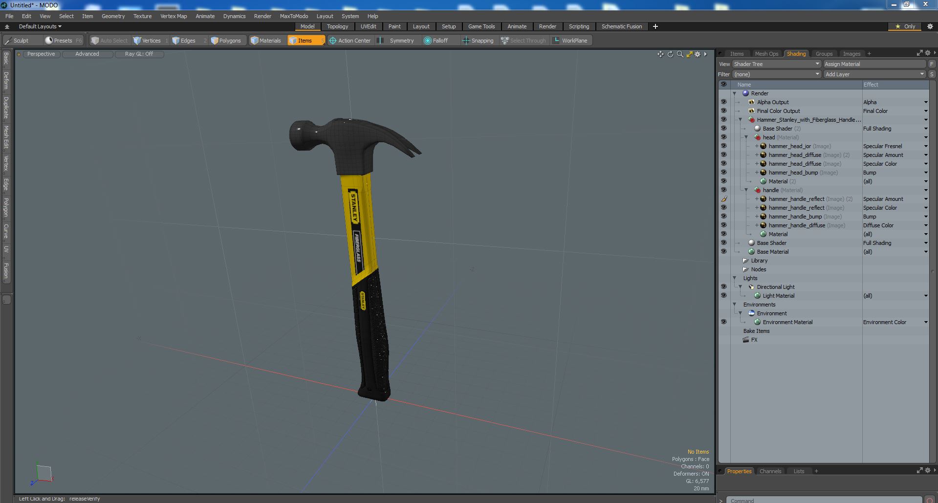 Hammer Stanley with Fiberglass Handle is a high quality, photo real 3d model that will enhance detail and realism to any of your rendering projects. The model has a fully textured, detailed design that allows for close-up renders, and was originally modeled in 3ds Max 2020 and rendered with V-Ray. Renders have no postprocessing!
