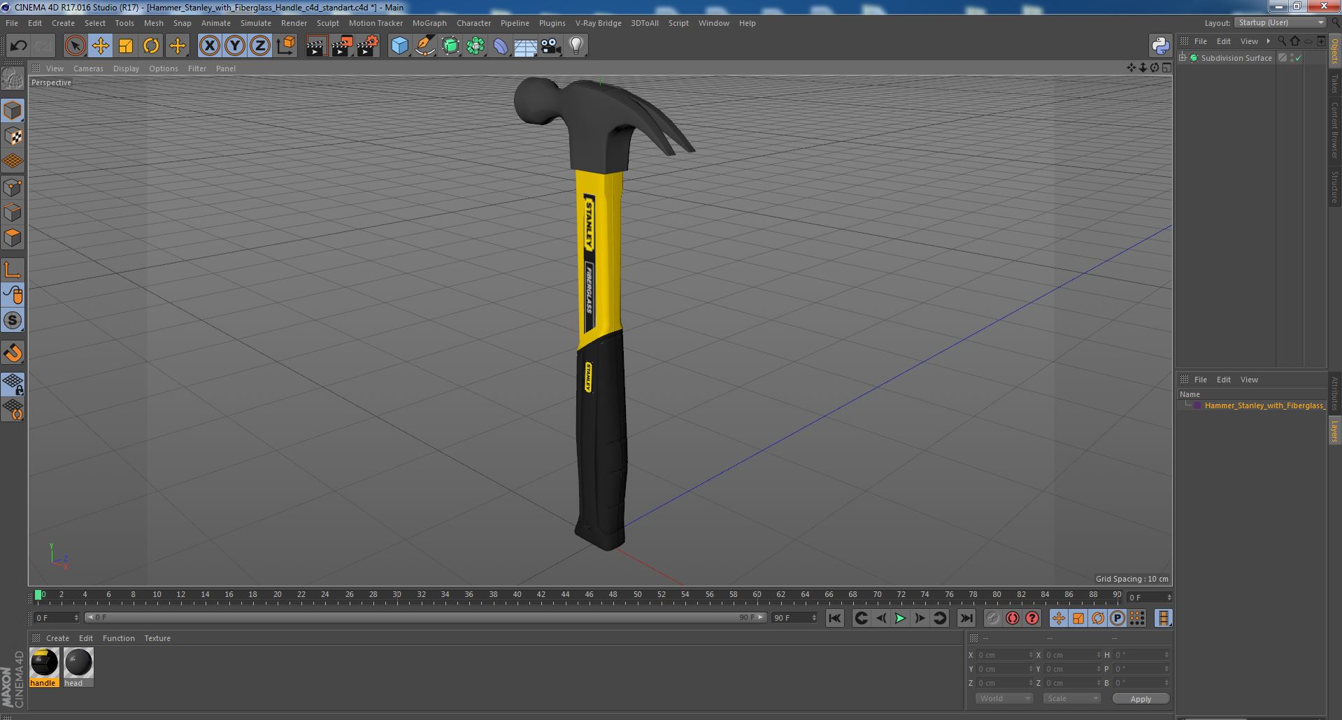 Hammer Stanley with Fiberglass Handle is a 3D model of versatile tool which can be used for various tasks.