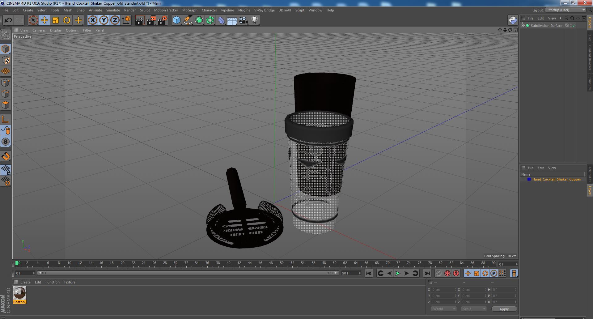 Hand Cocktail Shaker Copper is a high quality, photo real 3d model that will enhance detail and realism to any of your rendering projects. The model has a fully textured, detailed design that allows for close-up renders, and was originally modeled in 3ds Max 2020 and rendered with V-Ray. Renders have no postprocessing!