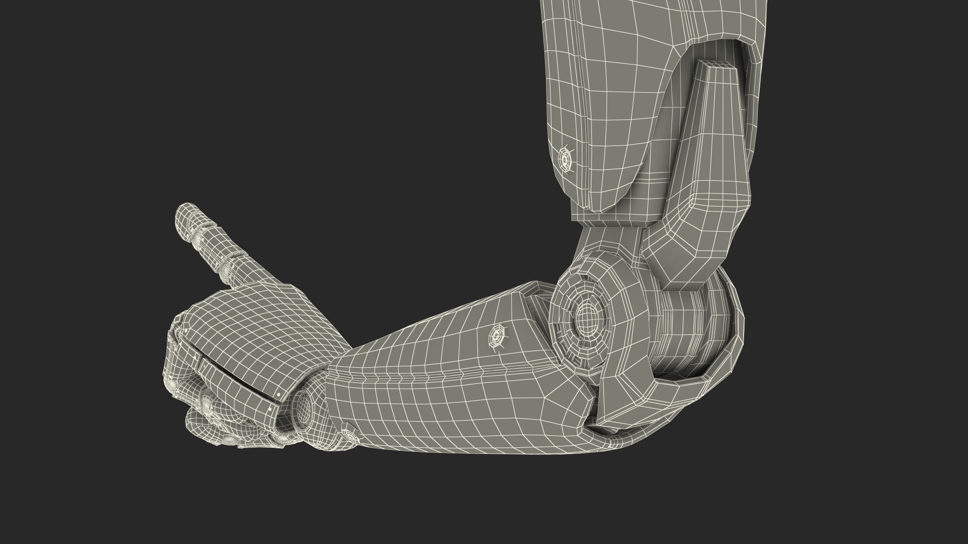 Hand of Humanoid Robot One Finger Pose is a 3D model of robotic humanoid upper limb (arm) which is a detail of futuristic human shaped robotic machine (human-like bot, sci-fi cyborg or humanoid type robot).