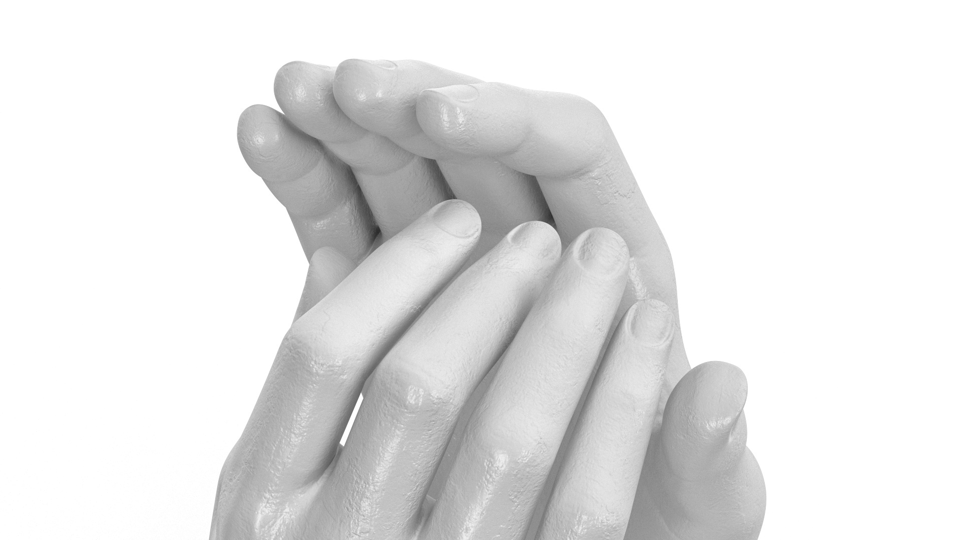 Hands Sculpture White is a 3d model of sculpture showing two intertwined right hands belonging to two different figures.
