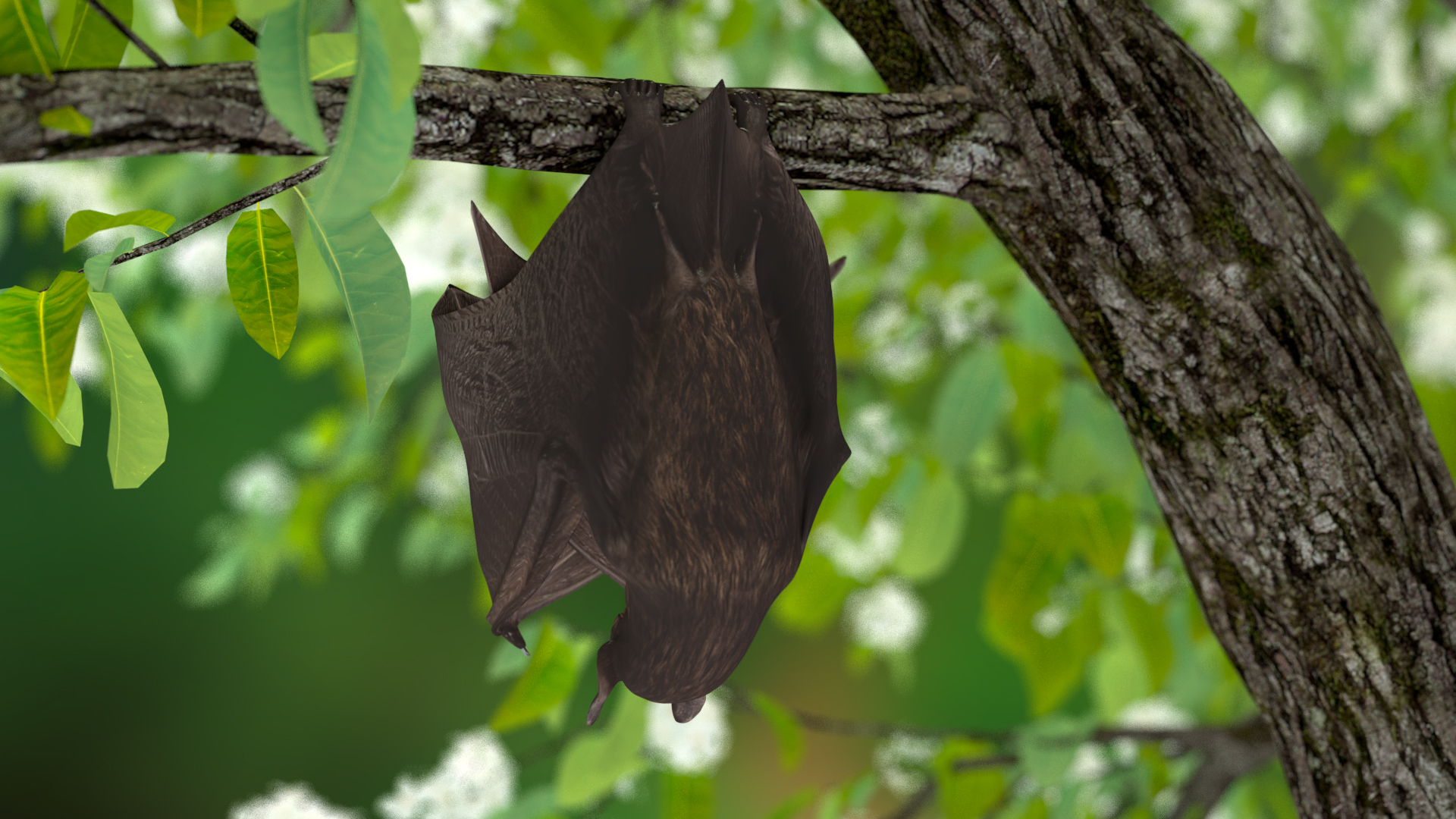 Hanging Black Bat is a three-dimensional model of a popular winged flying mammal animal of the order Chiroptera.