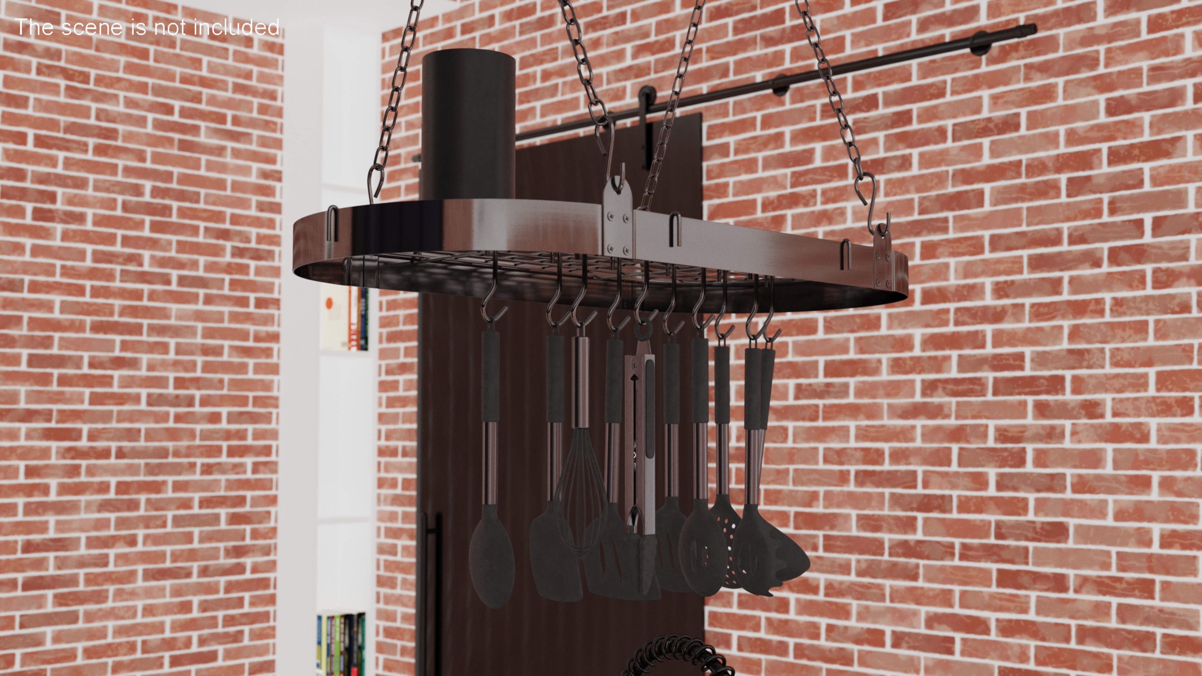 Hanging Pot Rack with Cooking Utensils is a high quality, photo real 3d model that will enhance detail and realism to any of your rendering projects. The model has a fully textured, detailed design that allows for close-up renders, and was originally modeled in 3ds Max 2020 and rendered with V-Ray. Renders have no postprocessing!