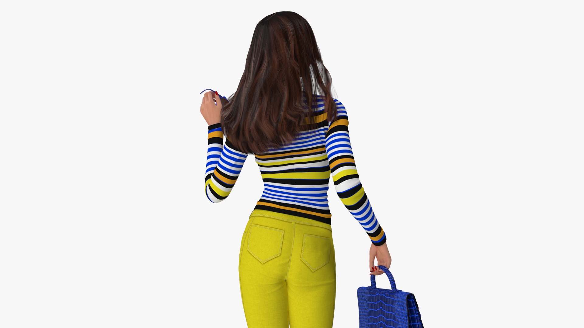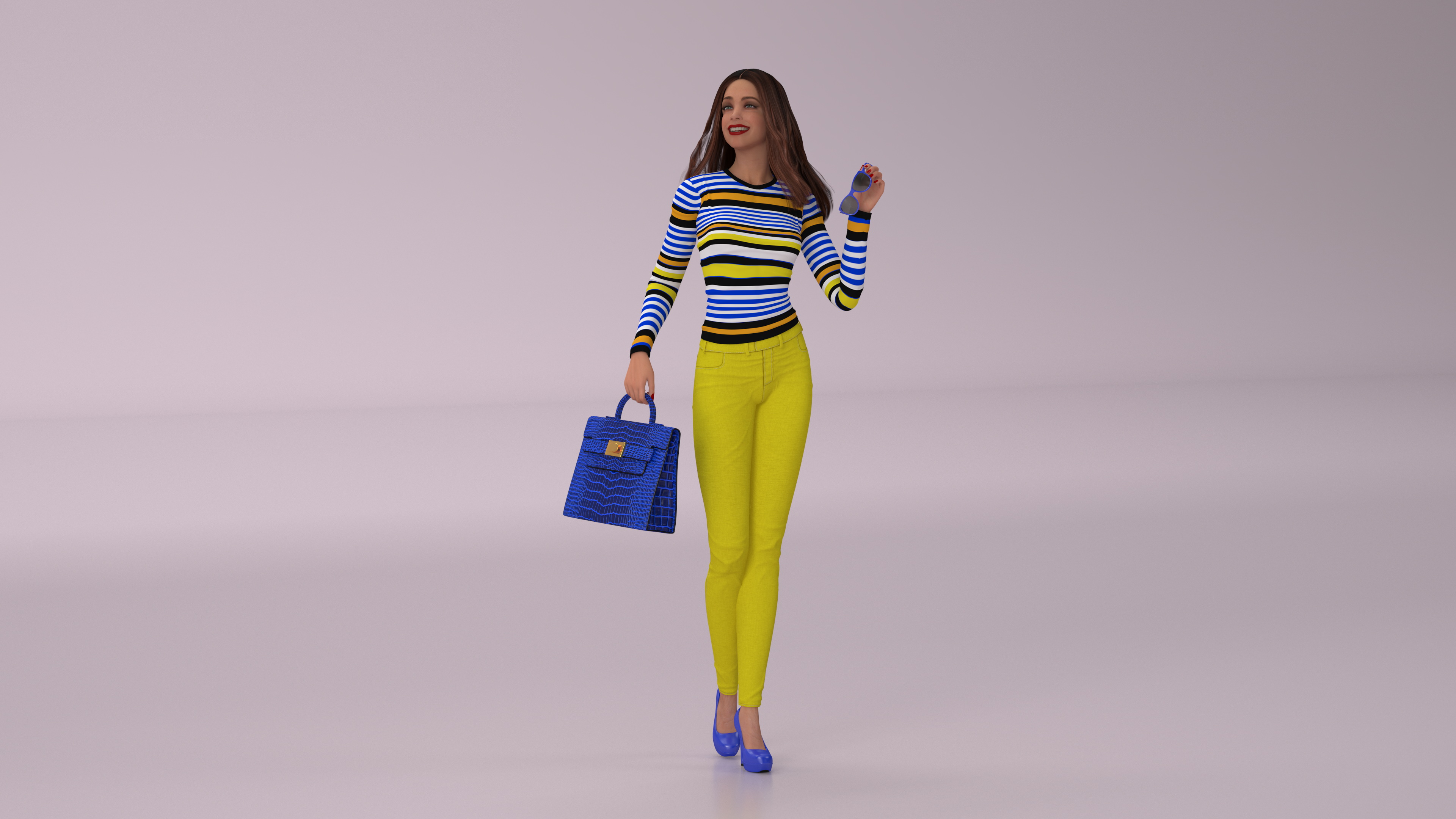 Happy Fashionable Woman with Handbag is a high quality, photo real 3d model that will enhance detail and realism to any of your rendering projects. The model has a fully textured, detailed design that allows for close-up renders, and was originally modeled in 3ds Max 2020 and rendered with V-Ray. Renders have no postprocessing!