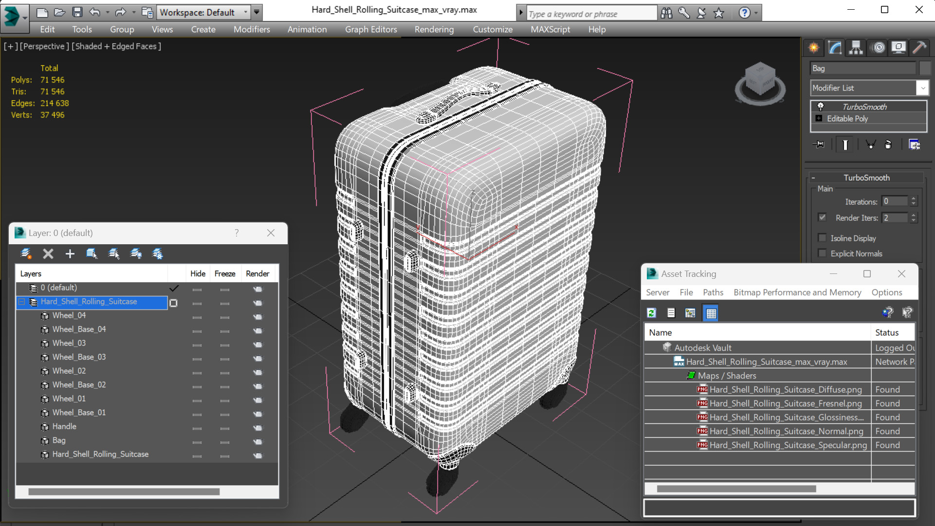 Hard Shell Rolling Suitcase is a high quality, photo real 3d model that will enhance detail and realism to any of your rendering projects. The model has a fully textured, detailed design that allows for close-up renders, and was originally modeled in 3ds Max 2020 and rendered with V-Ray. Renders have no postprocessing!