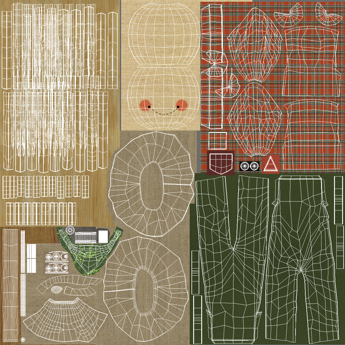 All textures and materials are included and mapped. (All colors can be easily modified.)