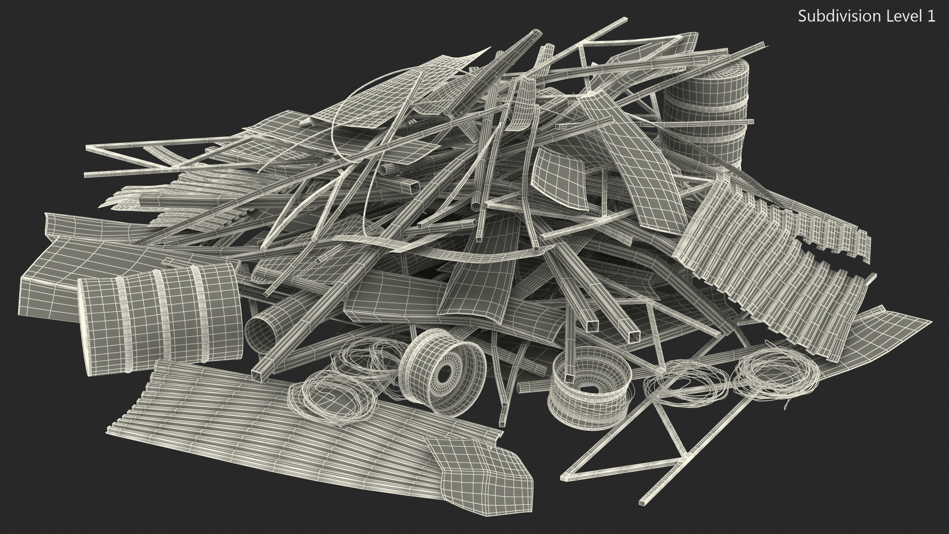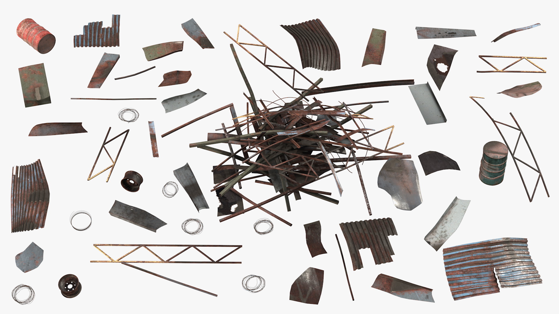 Heap of Metal Debris is a high quality, photo real 3d model that will enhance detail and realism to any of your rendering projects. The model has a fully textured, detailed design that allows for close-up renders, and was originally modeled in 3ds Max 2020 and rendered with V-Ray. Renders have no postprocessing!