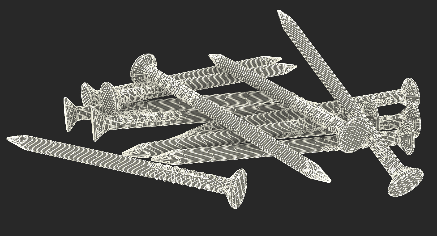Heap of Metal Steel Nails is a high quality, photo real 3d model that will enhance detail and realism to any of your rendering projects. The model has a fully textured, detailed design that allows for close-up renders, and was originally modeled in 3ds Max 2020 and rendered with V-Ray. Renders have no postprocessing!