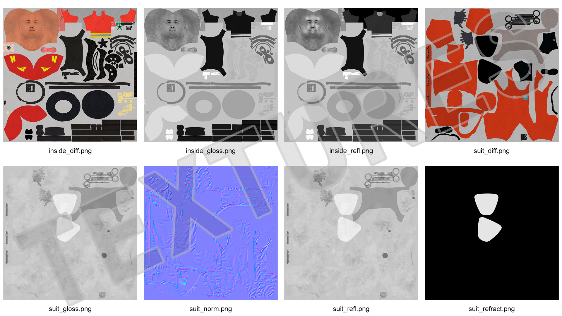 All textures and materials are included and mapped. (All colors can be easily modified.)