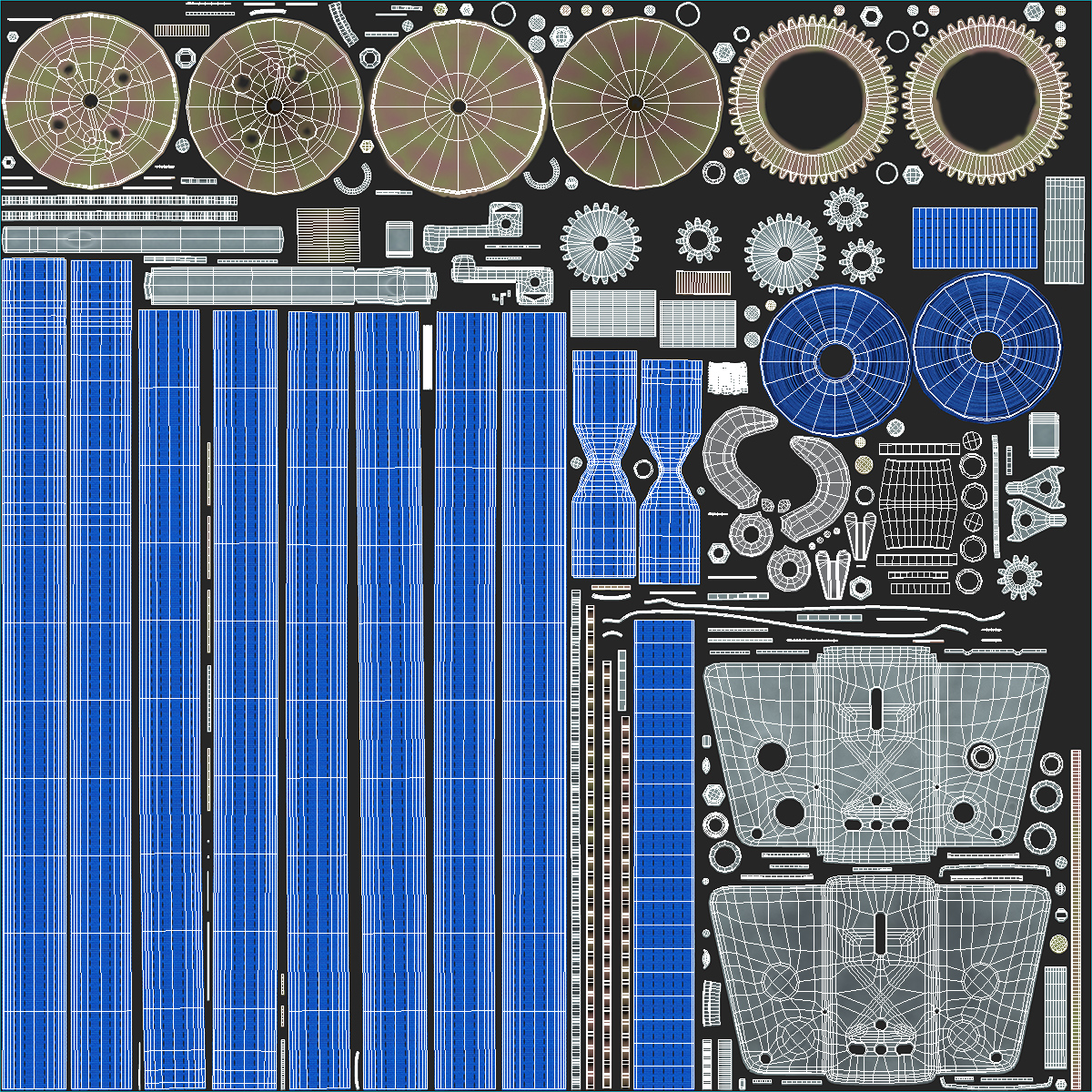 All textures and materials are included and mapped. (All colors can be easily modified.)