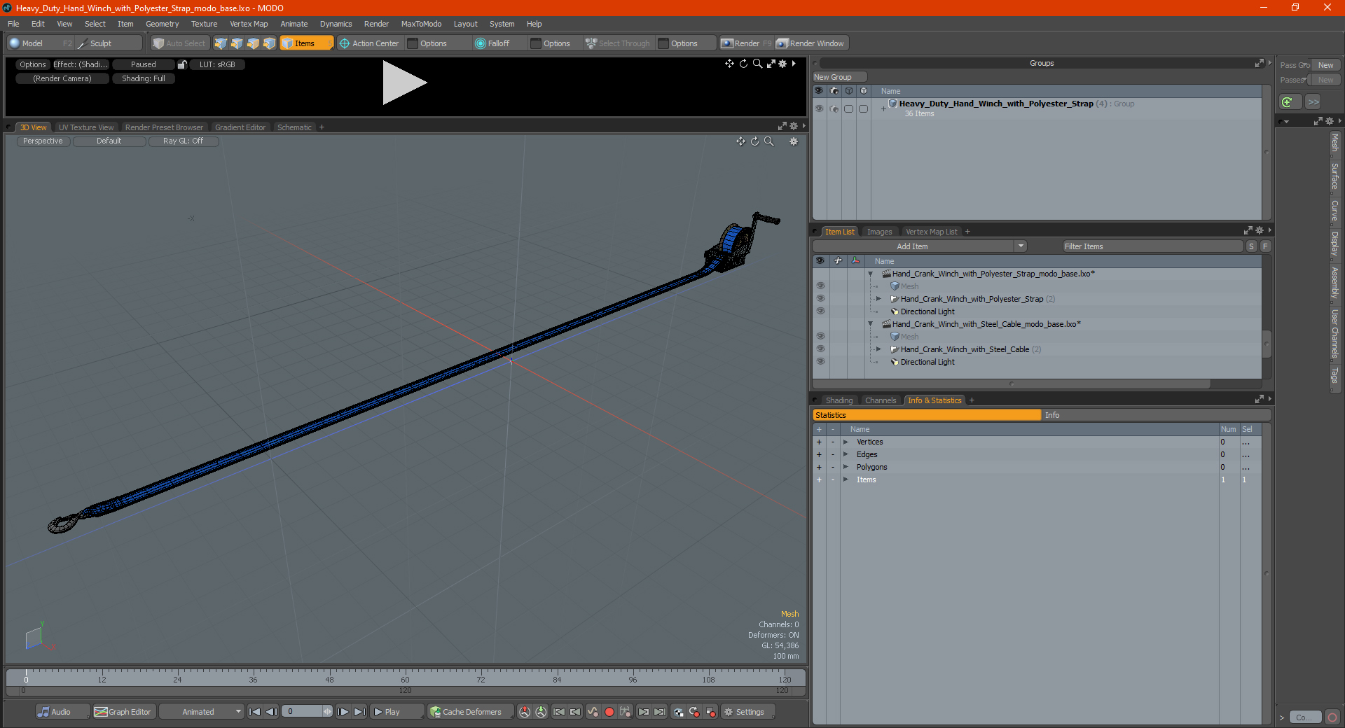 Heavy Duty Hand Winch with Polyester Strap is a high quality, photo real 3d model that will enhance detail and realism to any of your rendering projects. The model has a fully textured, detailed design that allows for close-up renders, and was originally modeled in 3ds Max 2020 and rendered with V-Ray. Renders have no postprocessing!
