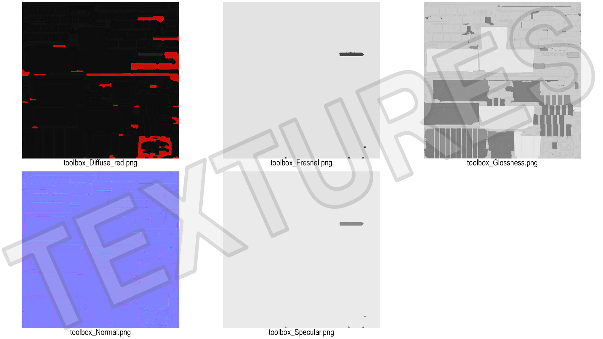 All textures and materials are included and mapped. (All colors can be easily modified.)