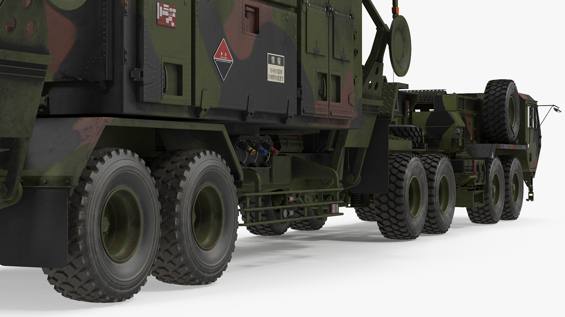 HEMTT M985 with AN MPQ53 Radar Camouflage Rigged a radiolocation military unit that consists of a high tech multifunctional phased array of radiolocation antenna elements.