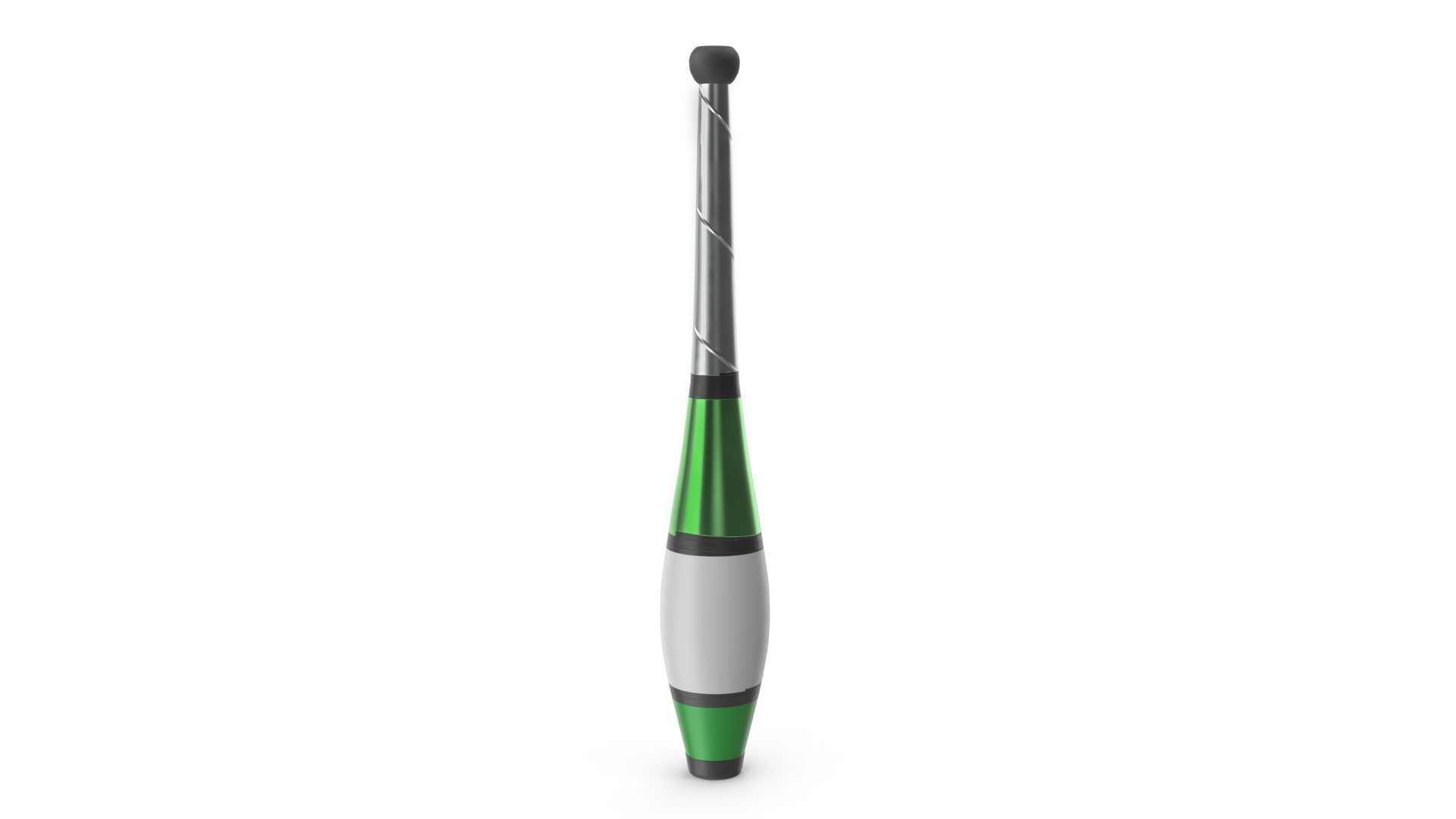 Henrys Juggling Club Green is a three-dimensional model of juggling club (pin or baton) that is a a prop used by jugglers.