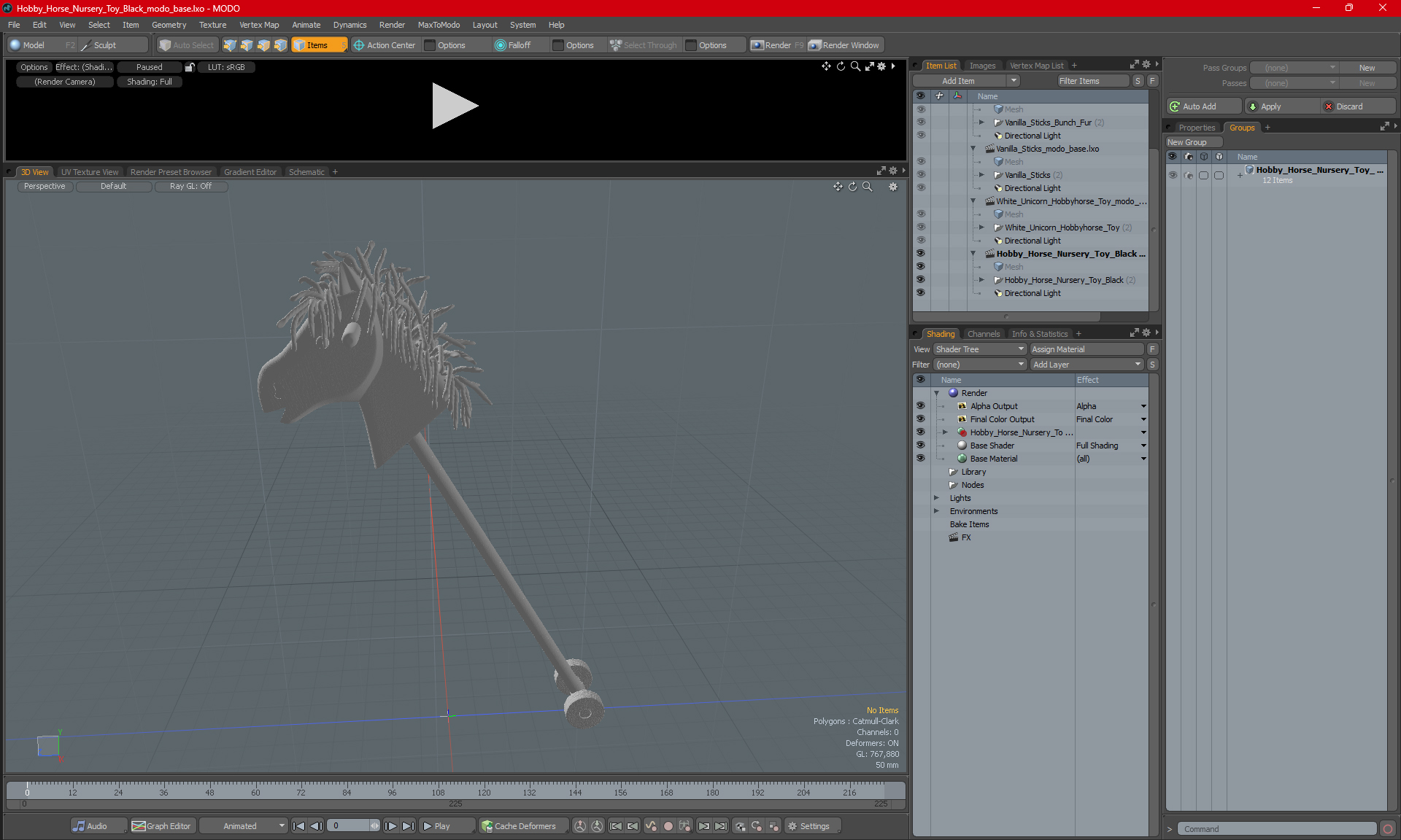 Hobby Horse Nursery Toy Black is a high quality, photo real 3d model that will enhance detail and realism to any of your rendering projects. The model has a fully textured, detailed design that allows for close-up renders, and was originally modeled in 3ds Max 2020 and rendered with V-Ray. Renders have no postprocessing!