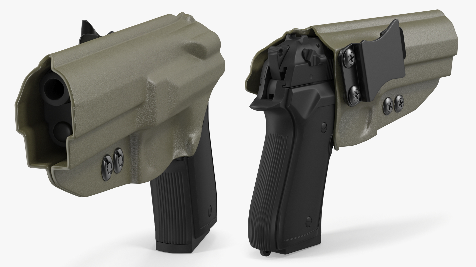 Holster Beretta 92 Kydex Green is a 3d model of highly reliable, accurate handgun with good ammunition capacity.