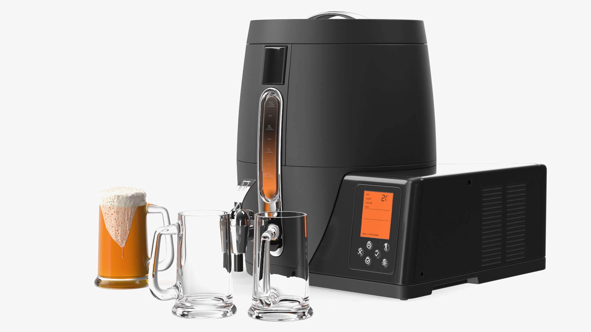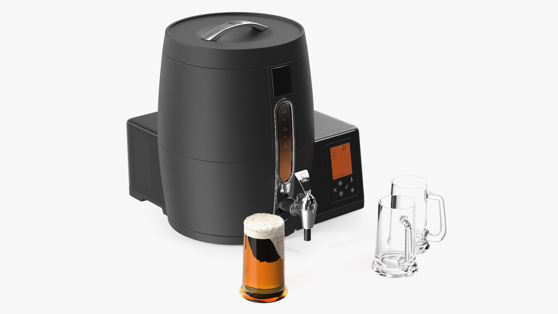 Home Beer Brewing Machine with Beer Mugs is a 3d model of device designed for home use that allows individuals to brew their own beer at home.