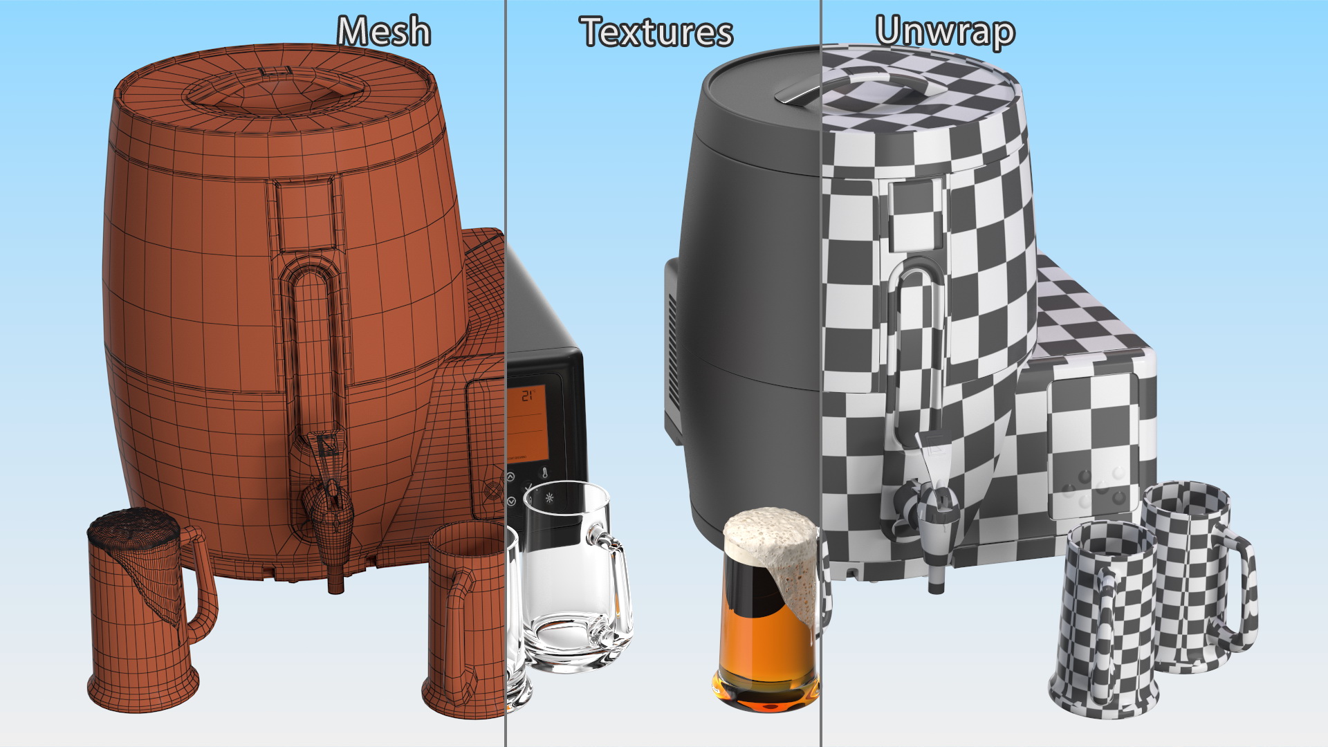 Home Beer Brewing Machine with Beer Mugs is a high quality, photo real 3d model that will enhance detail and realism to any of your rendering projects. The model has a fully textured, detailed design that allows for close-up renders, and was originally modeled in 3ds Max 2020 and rendered with V-Ray. Renders have no postprocessing!